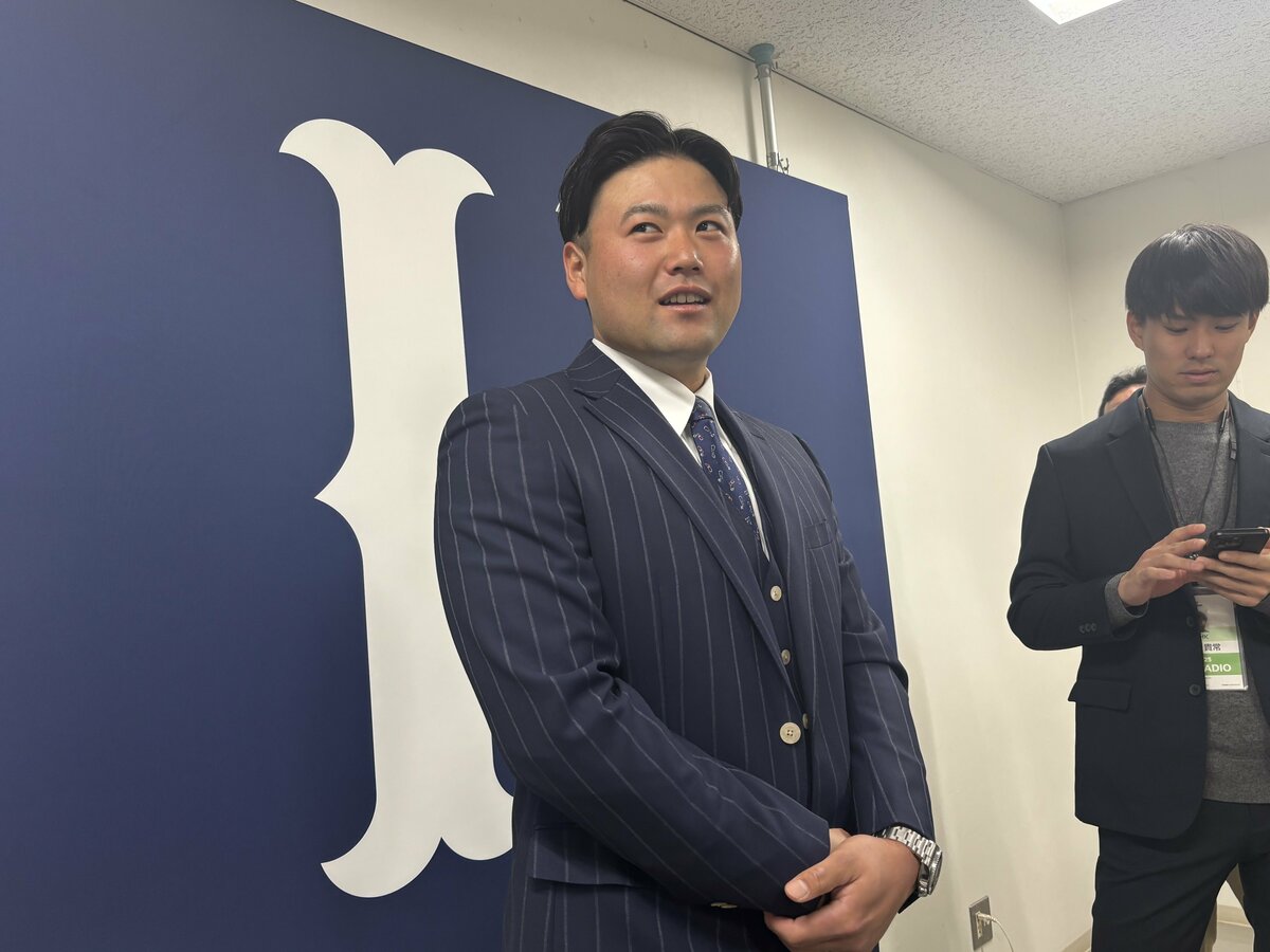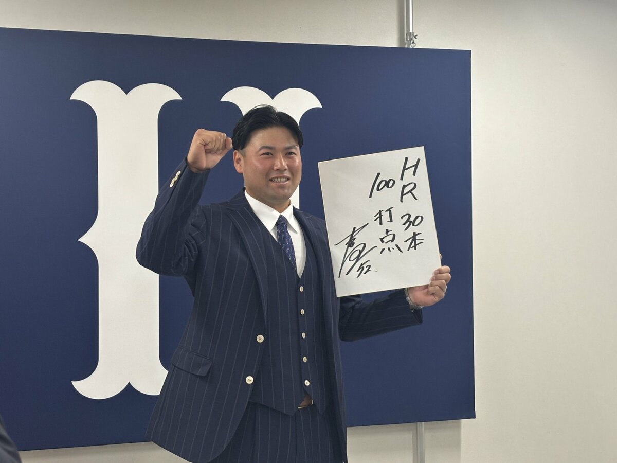 経験豊富な秋山や野間、ドラフト1位で外野手の平川蓮が加入するなどライバルの多いポジションですが、目標は「30本100打点」と語った末包昇大。貴重な右の和製大砲として5年目の来季はさらなる活躍が期待されます。