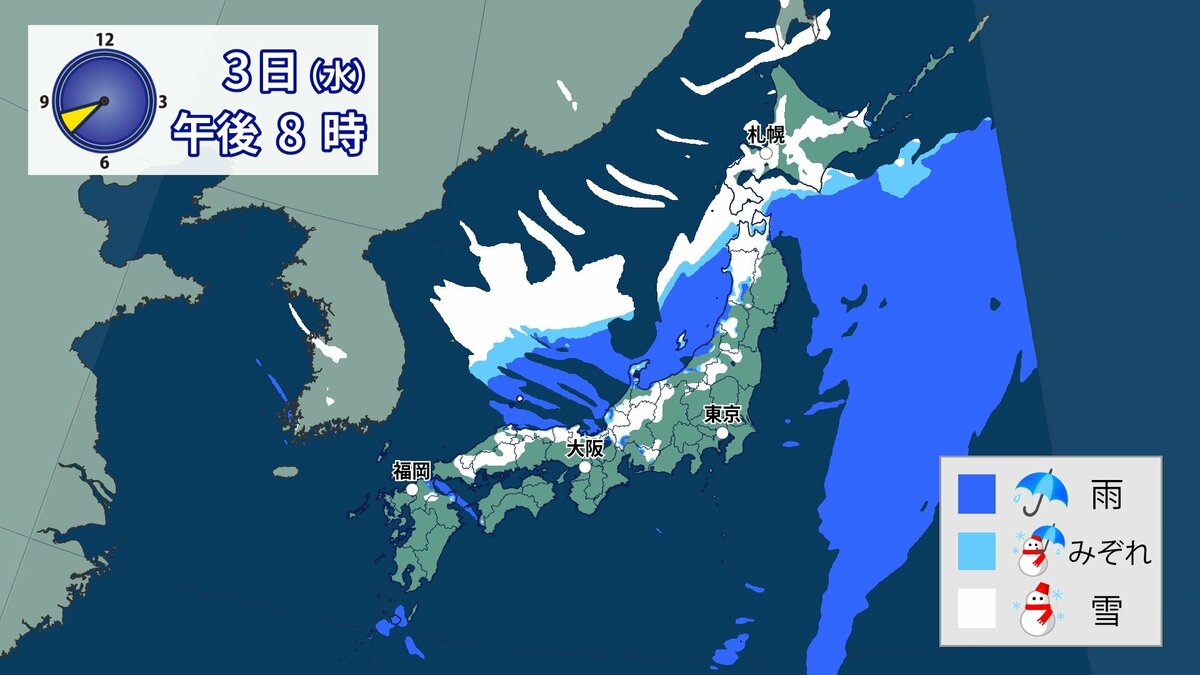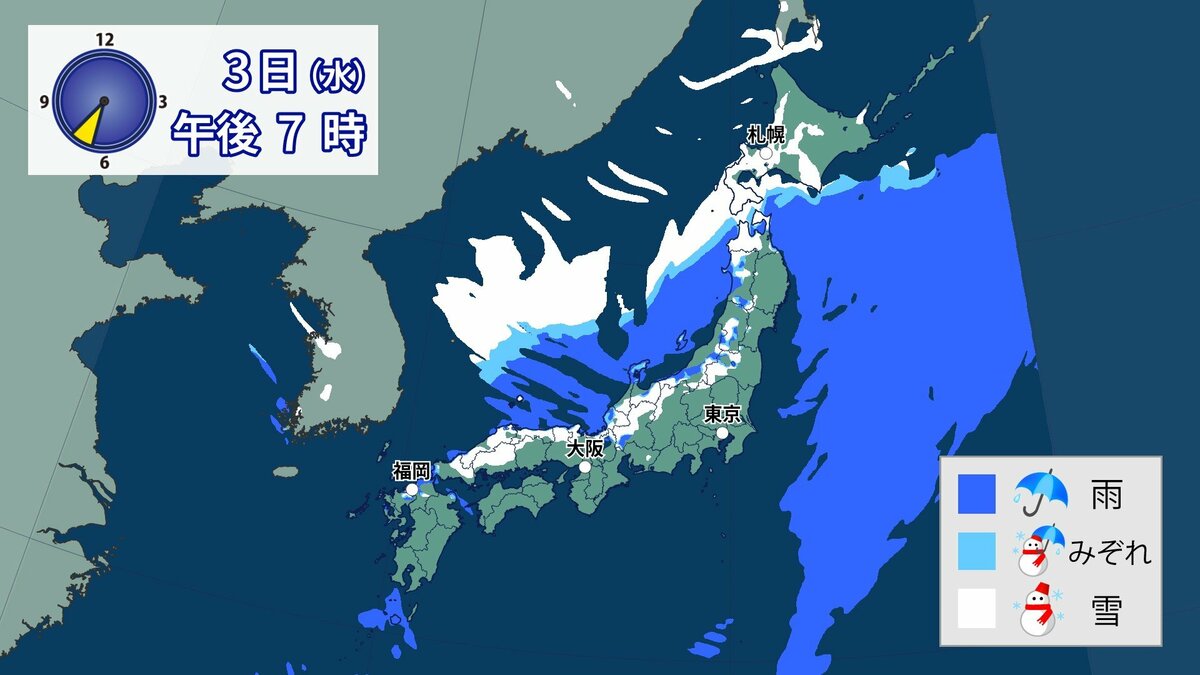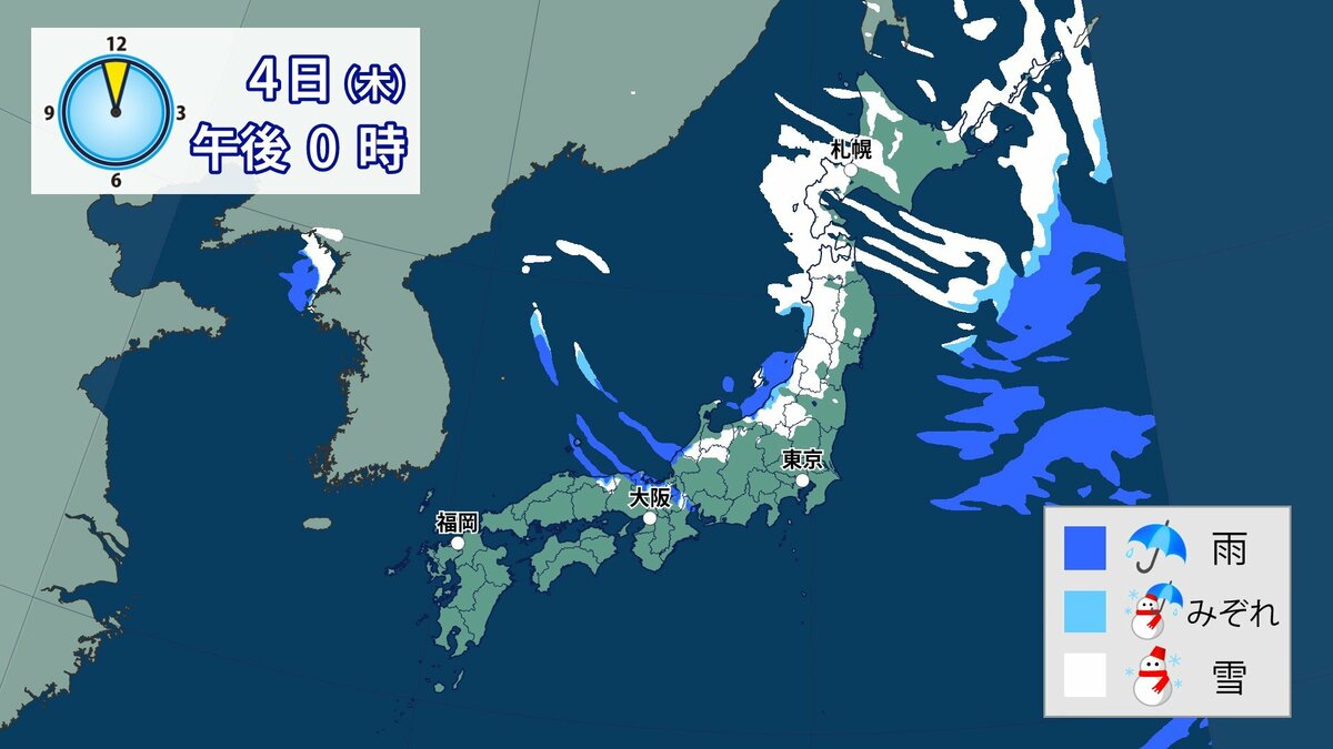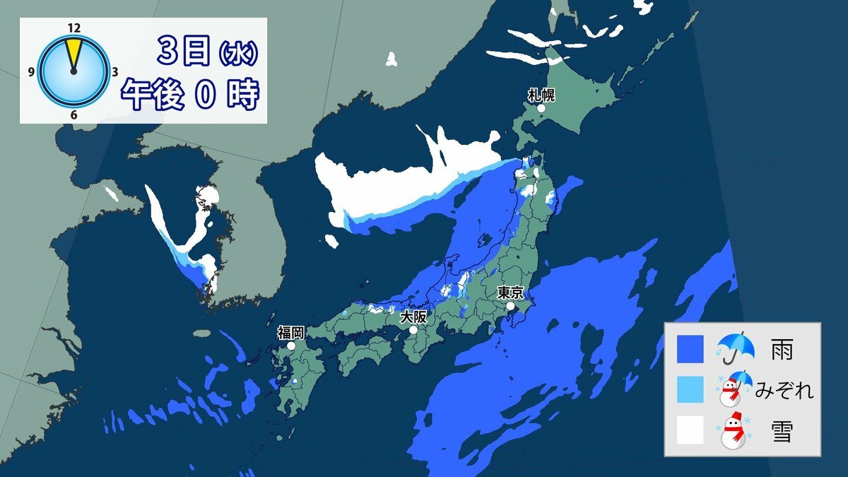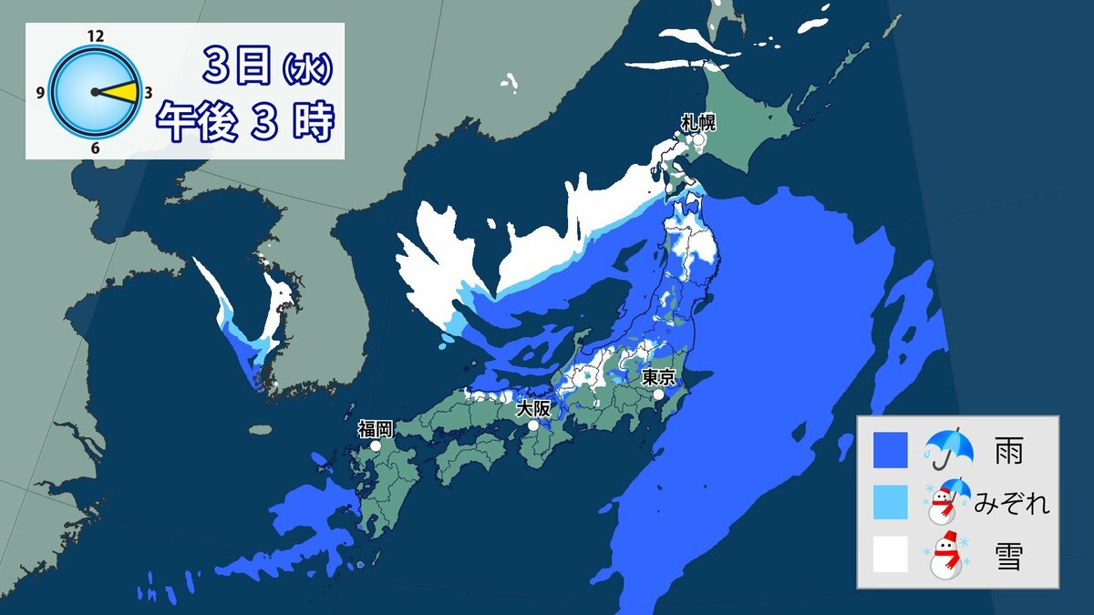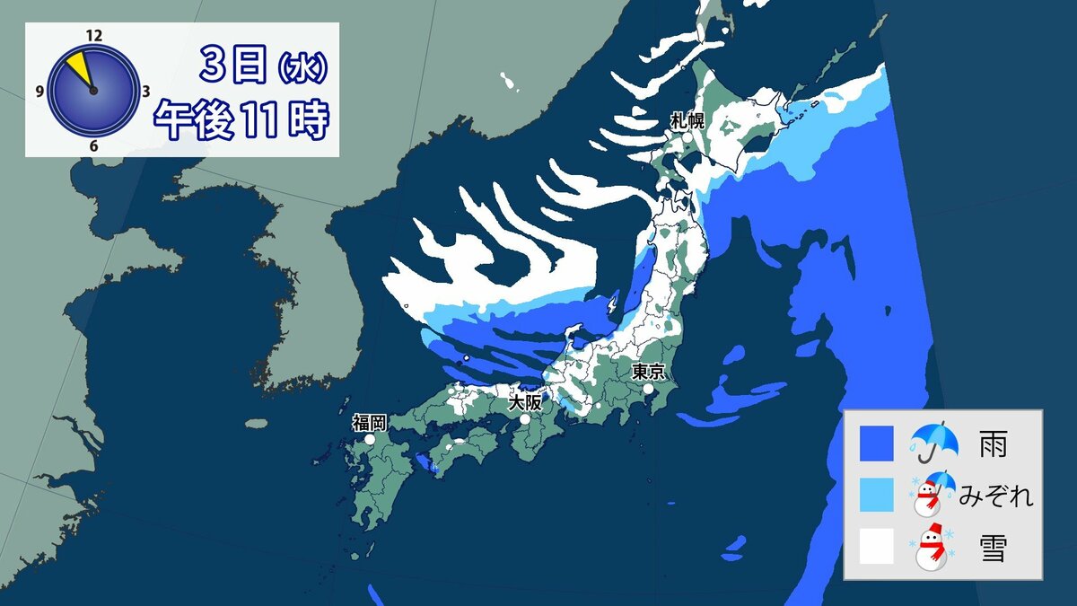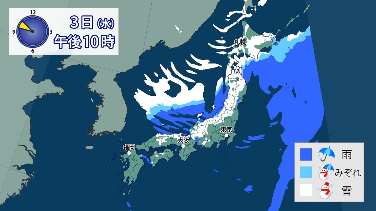 このあと、山地では4日の明け方にかけて雪が積もり、平地でも一部、雪雲が流れ込むところがあるでしょう。