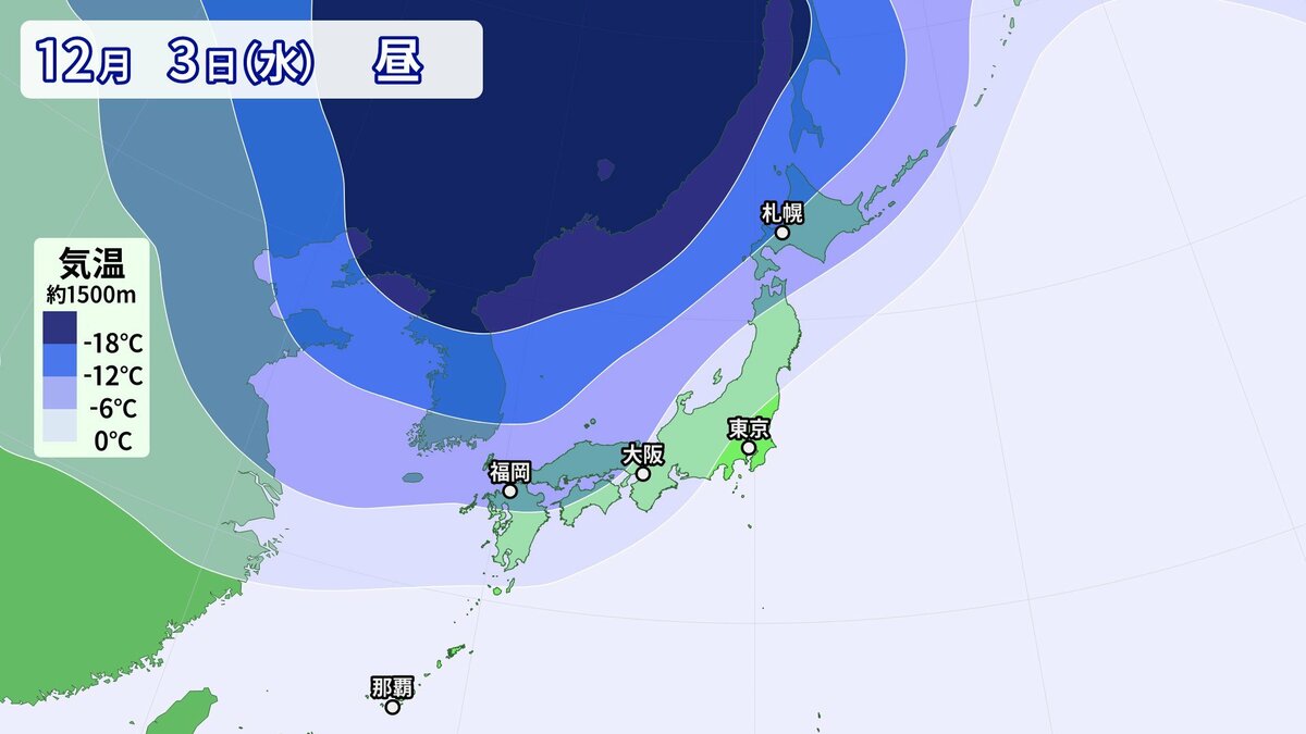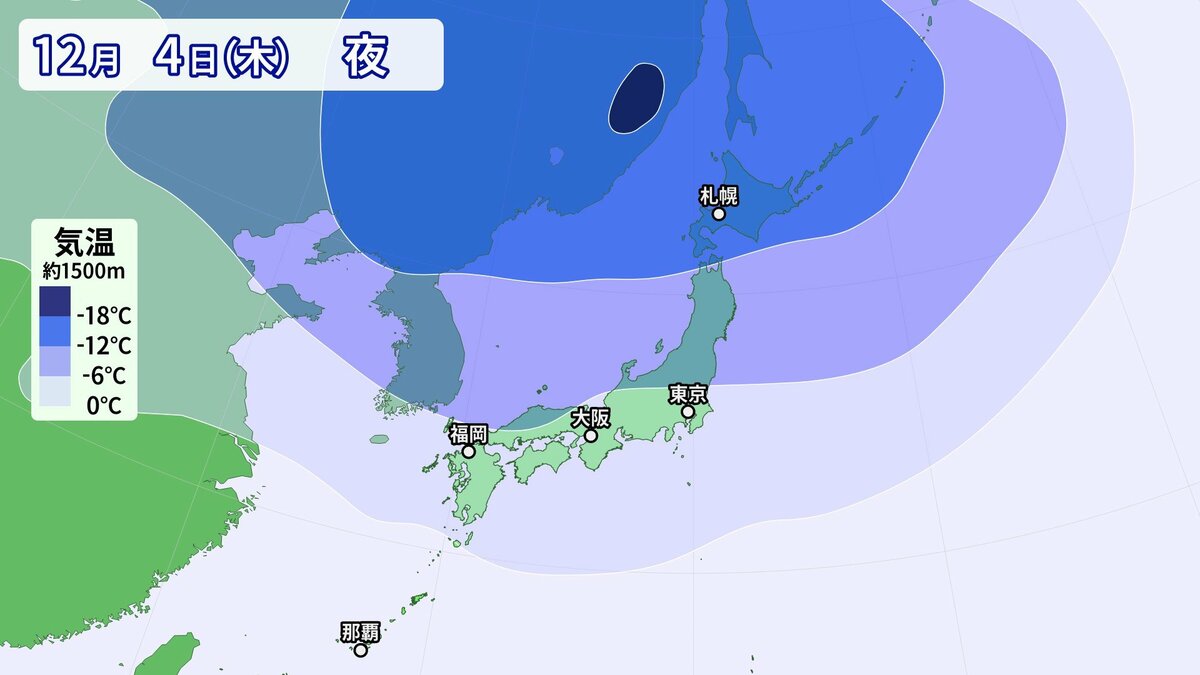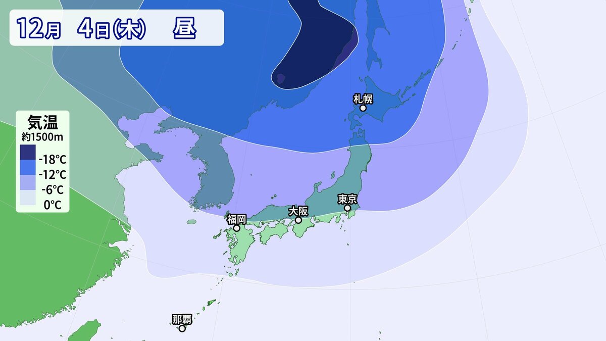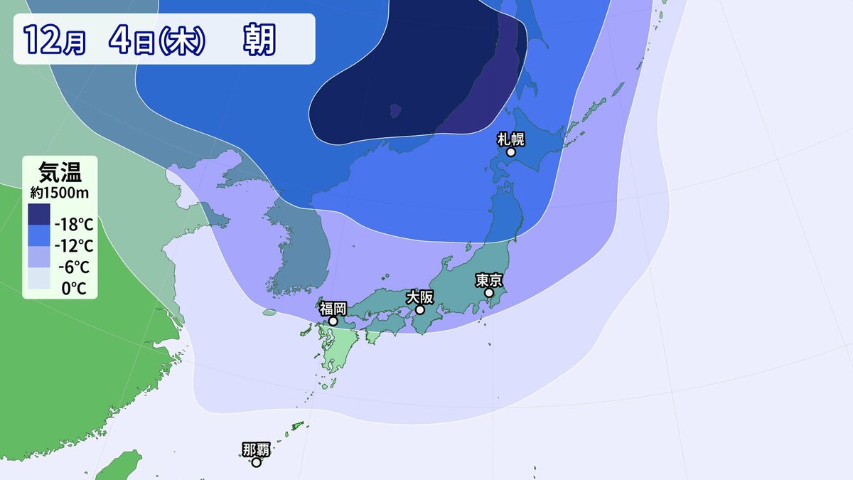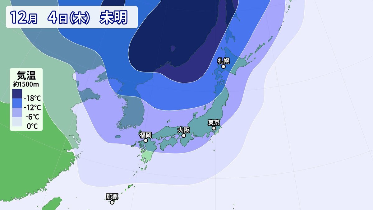 気象庁によりますと、日本付近は3日以降冬型の気圧配置が強まり、4日にかけてこの時期としては強い寒気が流入する見込みです。