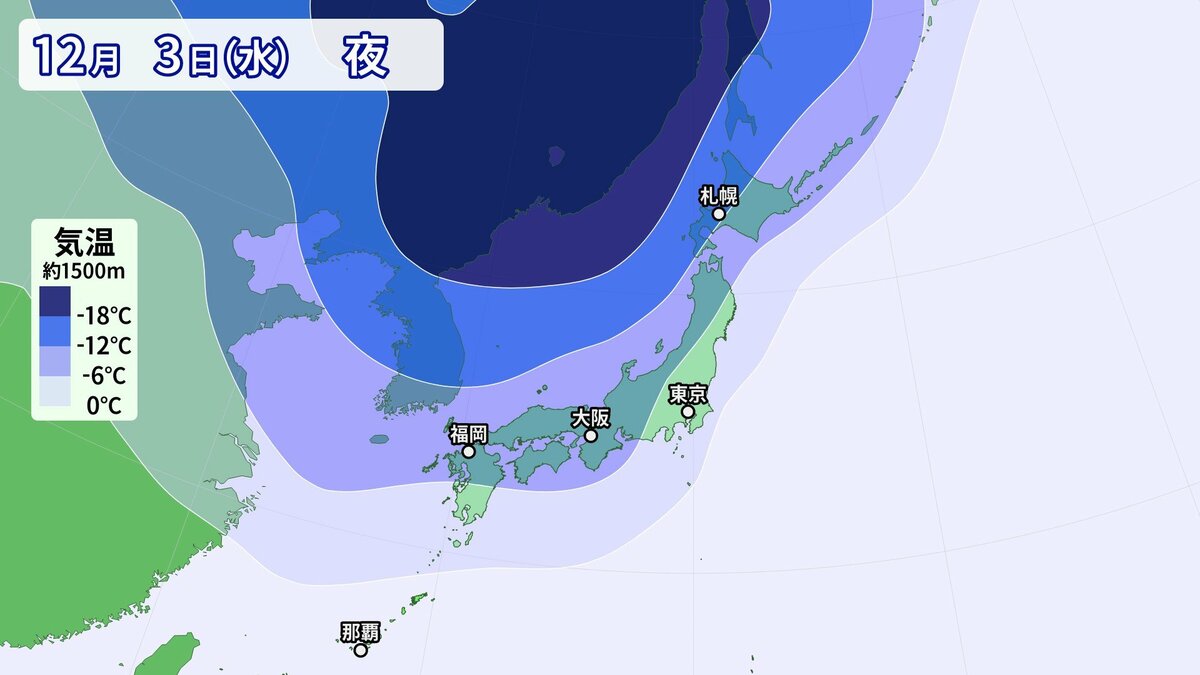 3日から4日にかけて冬型の気圧配置が強まり、日本列島の上空にはこの時期としては強い寒気が流れ込む予想です。日本海側を中心に西日本の広い範囲で雪になる可能性があります。
