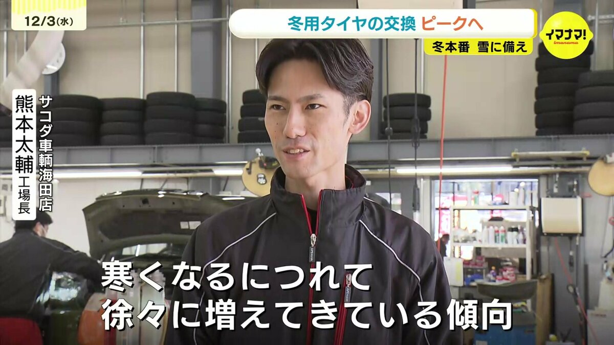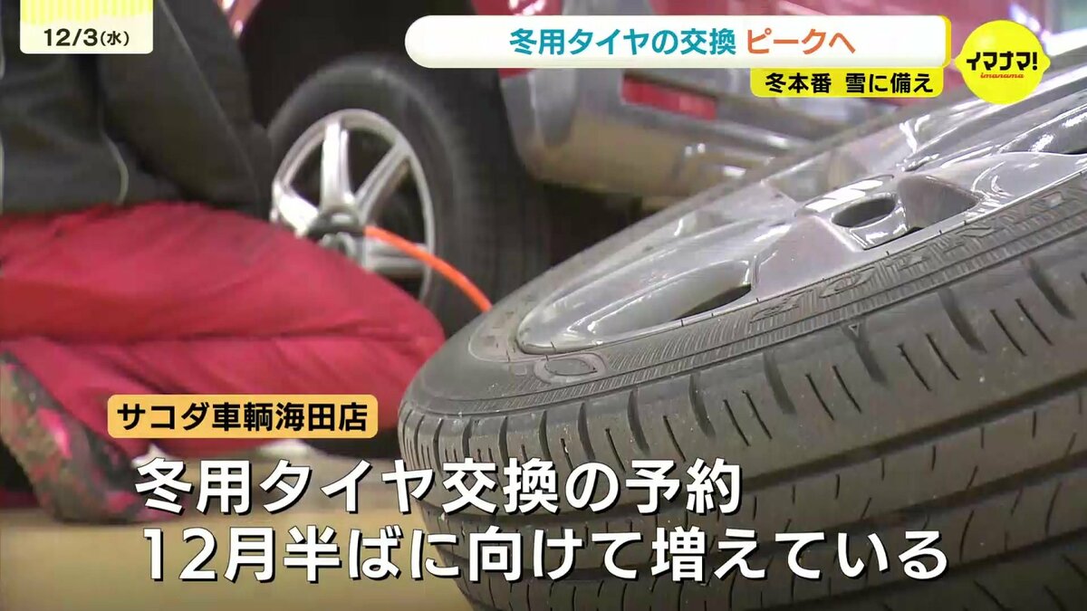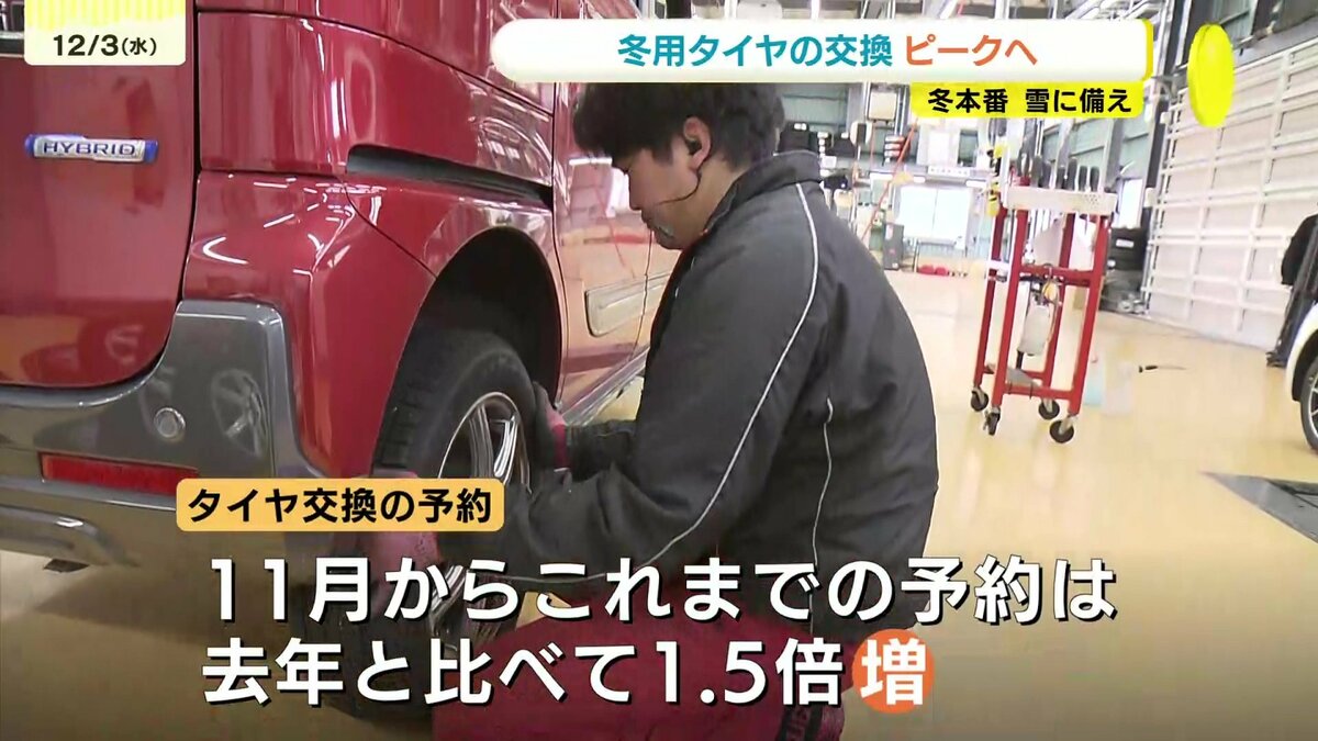 昨年は暖冬で冬用タイヤの需要は少なかったそうです。今年は11月からこれまでのタイヤ脱着の予約は、去年と比べ1・5倍増え、前倒しで準備を進める人が多くなっているということです。