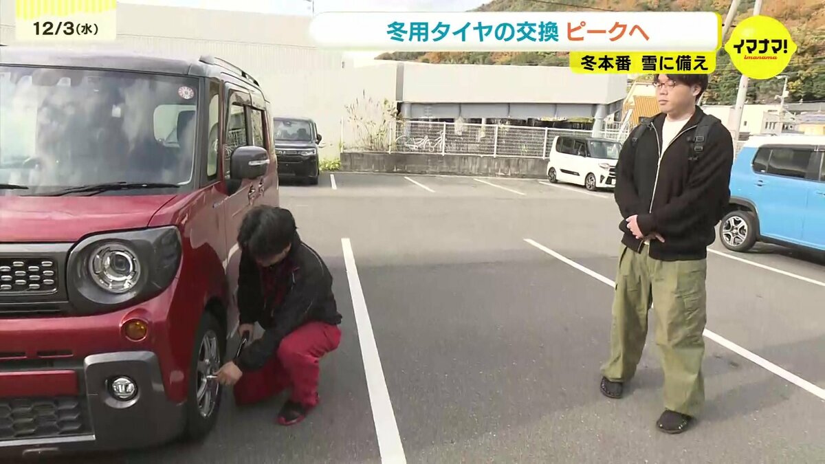 広島市の自動車販売店では雪に備えるため冬用タイヤへの交換が佳境を迎えます。