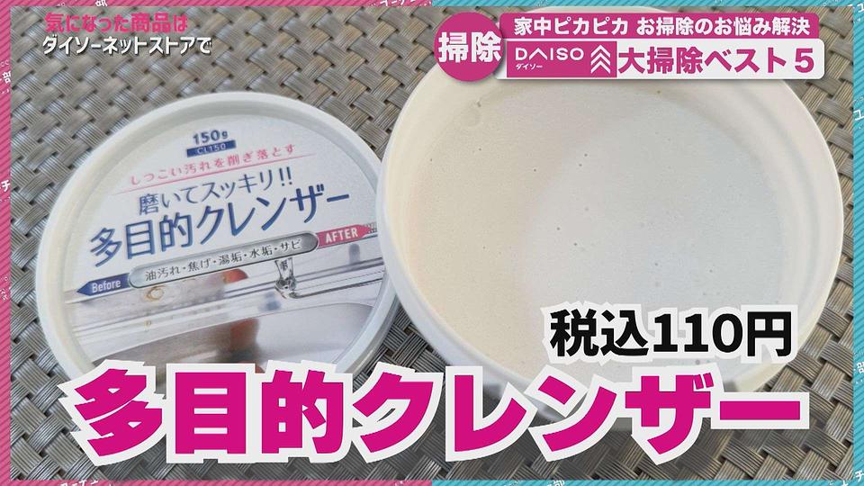 油汚れ、焦げ、湯アカ、水アカ、サビなど幅広い汚れに使えると話題の 「多目的クレンザー」(税込110円) を使えば、