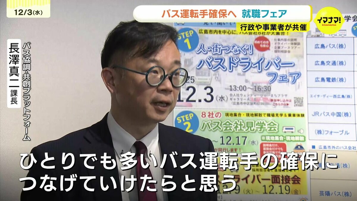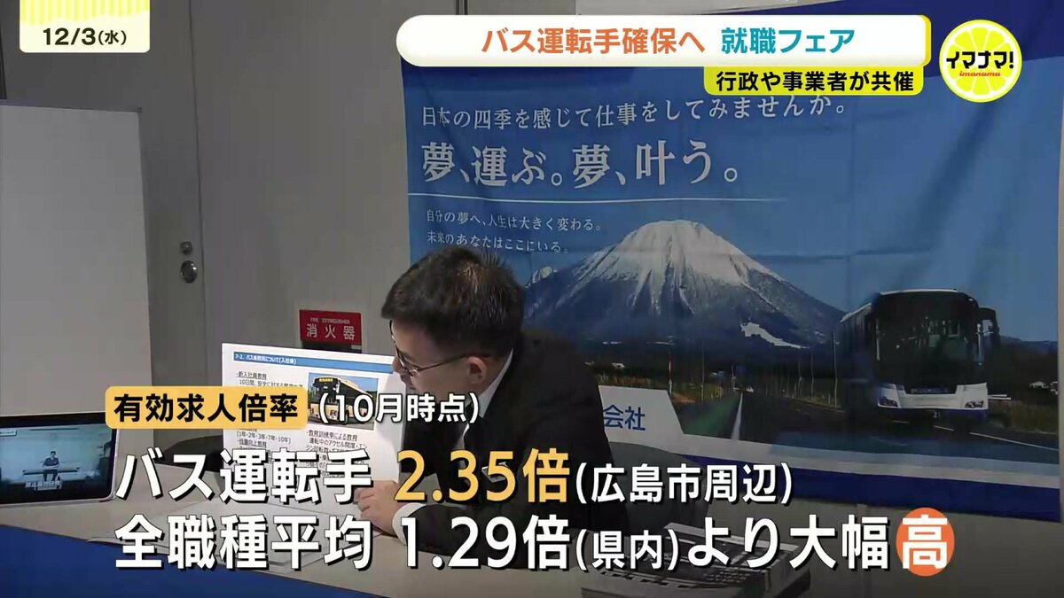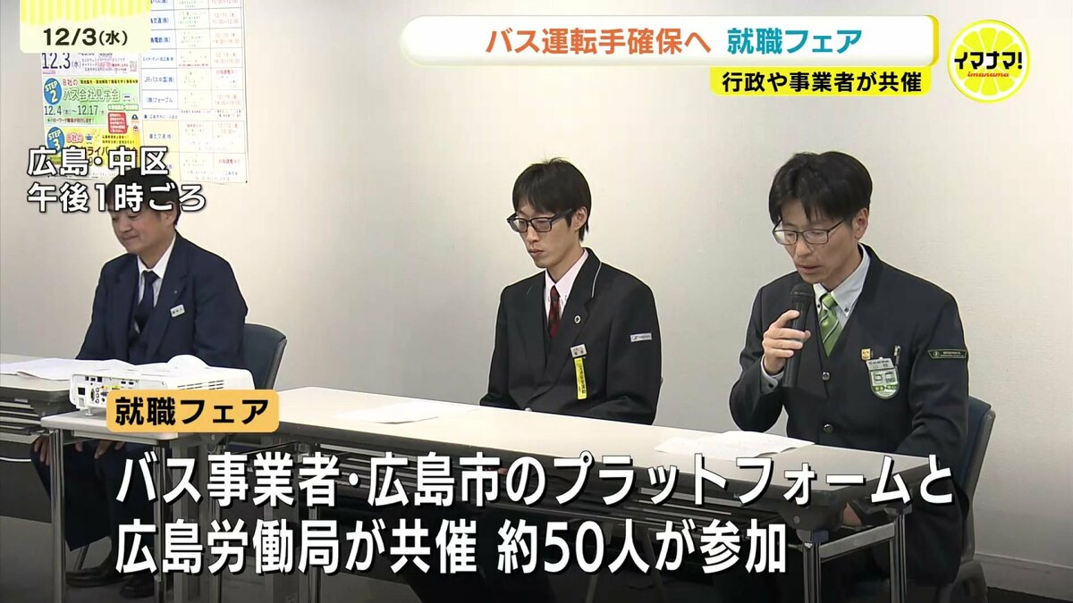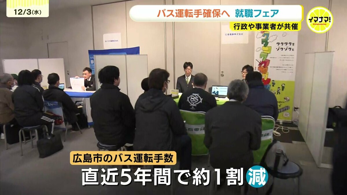 バス運転手不足が深刻化するなか、行政機関とバス事業者が連携した就職フェアが、3日、広島市で開かれました。
