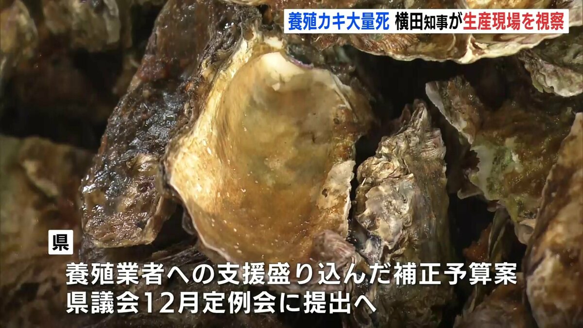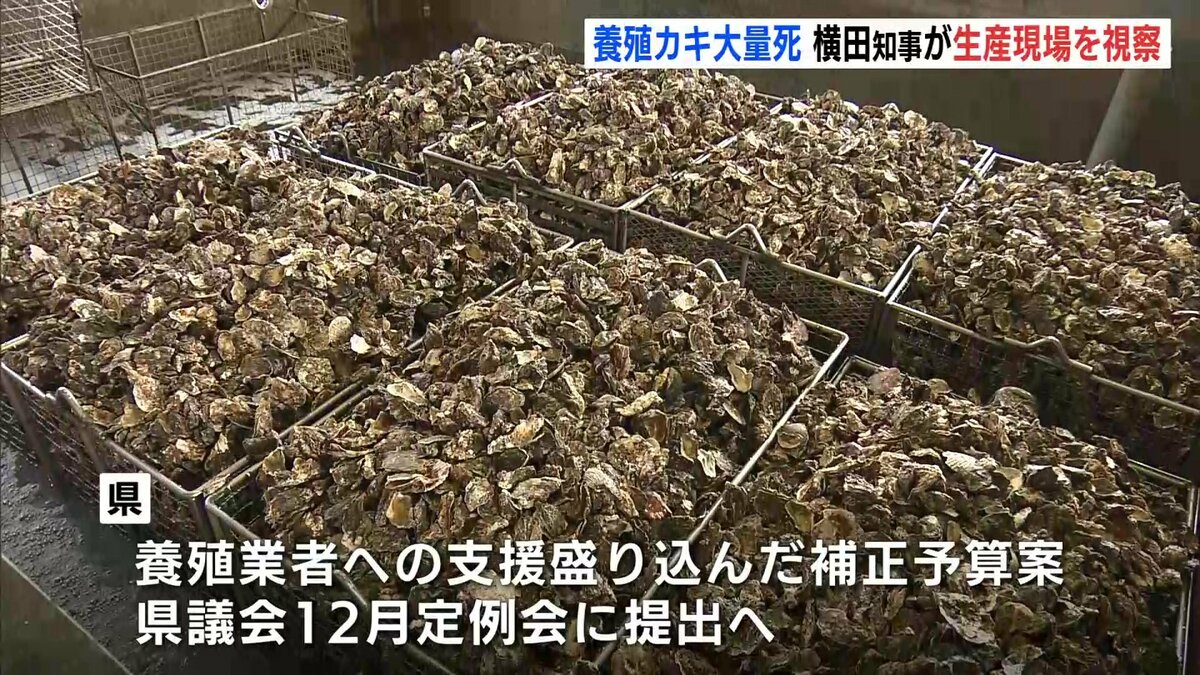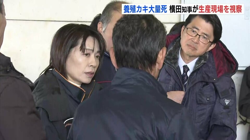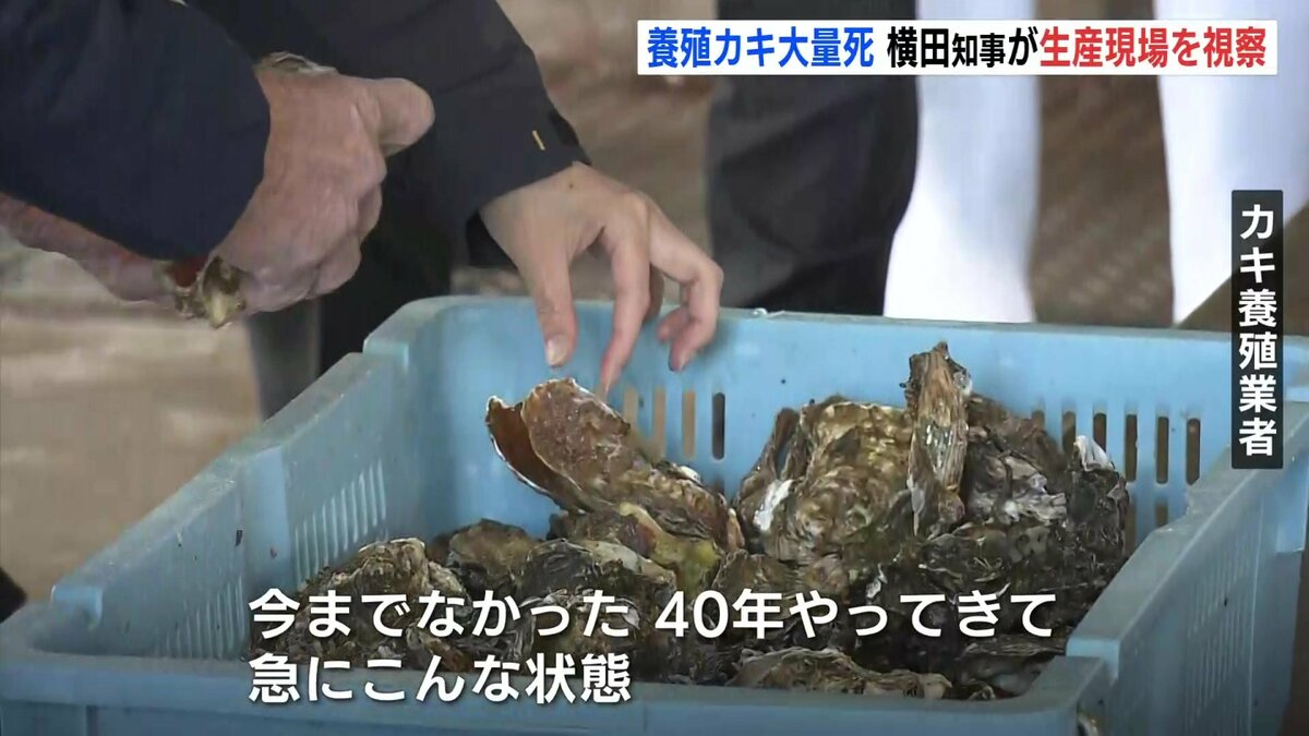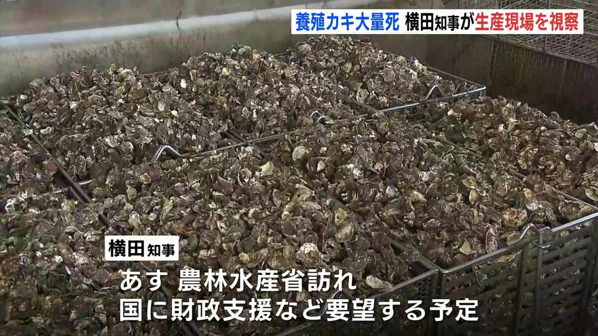 「大変多くの、8割、9割、9割のカキがへい死しているということで、しっかりと県としても、研究もそうですし、経営の安定に向けてしっかりと対策を打っていかなければいけないなと改めて思いました」