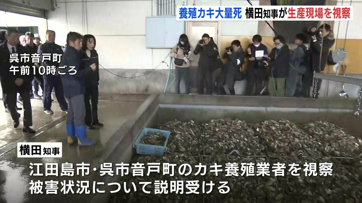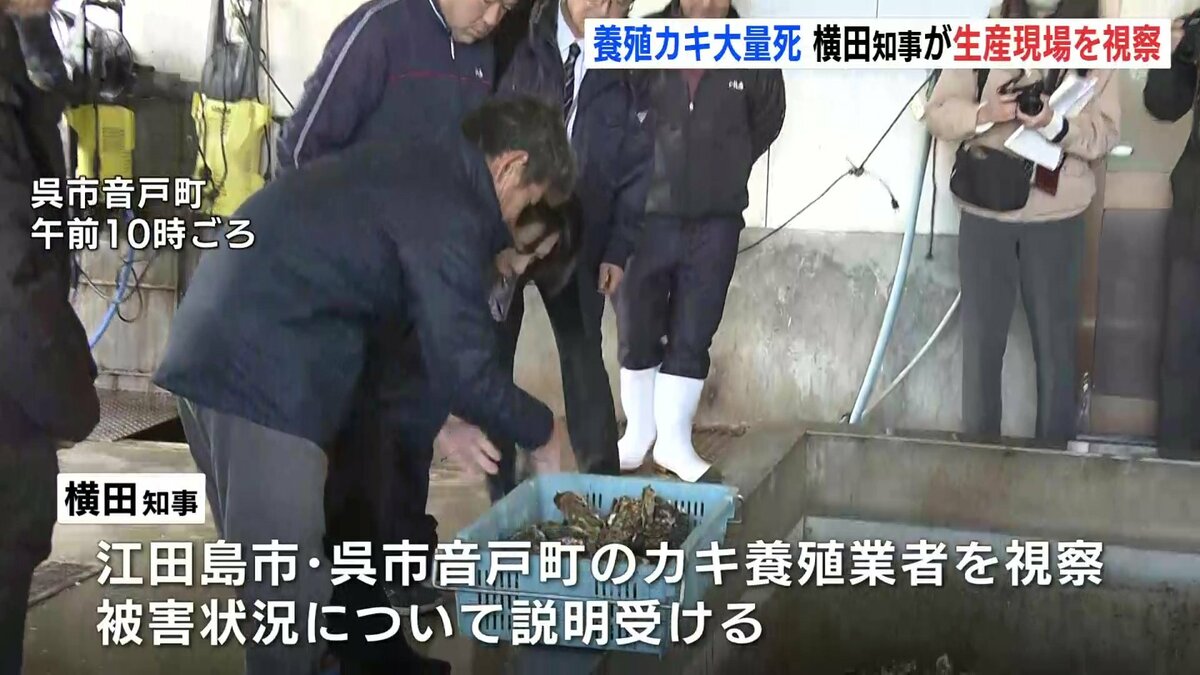広島県内で養殖カキが大量死している問題に対応するため、横田知事は生産現場を視察しました。