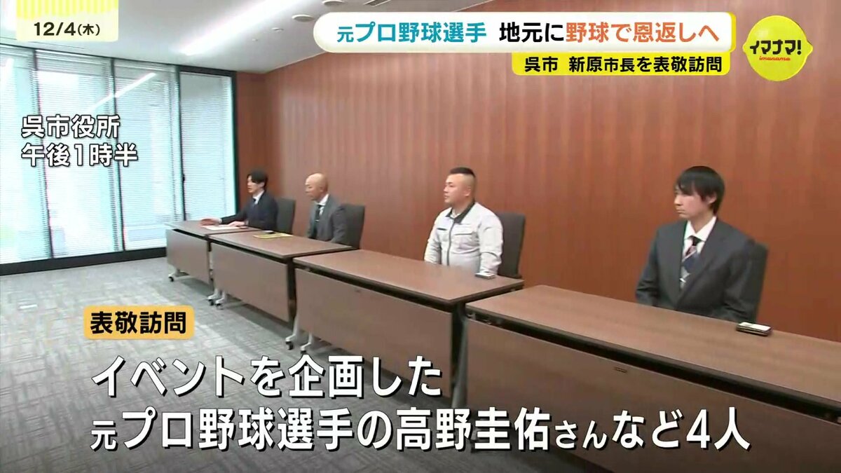 広島県呉市で野球教室イベントが開かれることになり、企画した元プロ野球選手が新原市長を表敬訪問しました。