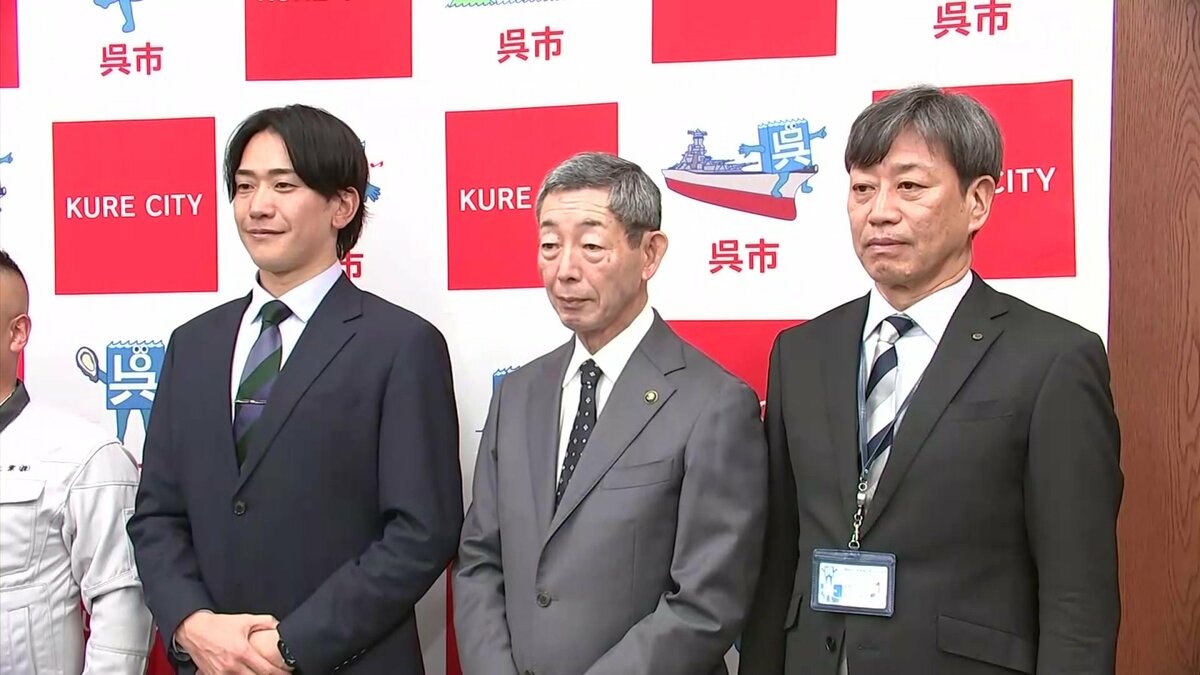 新原市長を表敬したのは、イベントを企画した元プロ野球選手の高野圭佑さんと一緒にサポートする同級生4人です。高野さんは、呉市出身で2015年に千葉ロッテマリーンズに入団。現在は、後進の育成にあたっています。