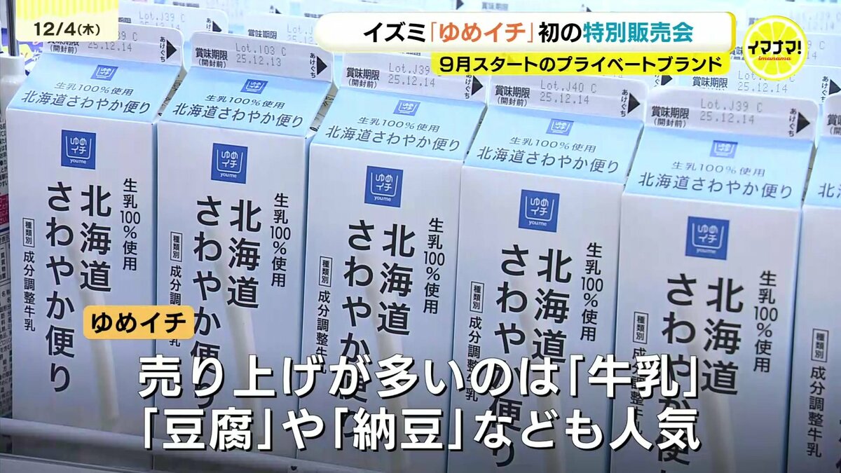 「ゆめイチ」は流通大手としては最後発のプライベートブランドで、9月にグループ260店舗で販売が始まりました。きょうの時点で69種類販売されています。想定を超える売り上げで、最もよく出るのが牛乳。豆腐や納豆なども人気だということです。