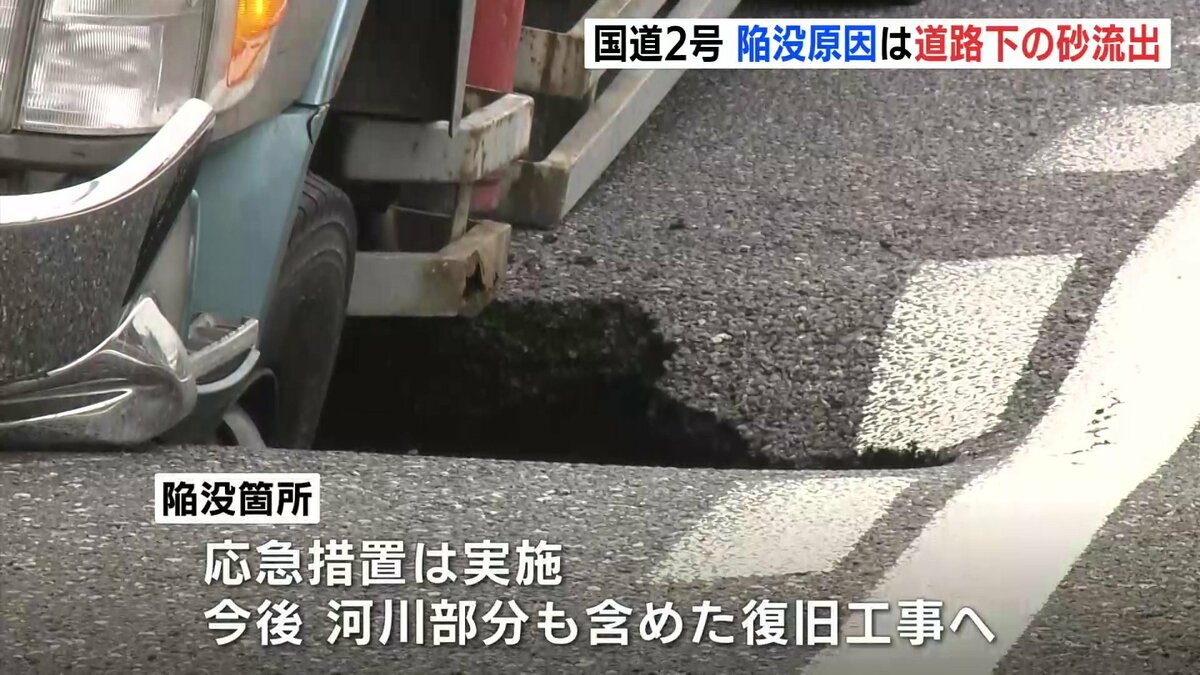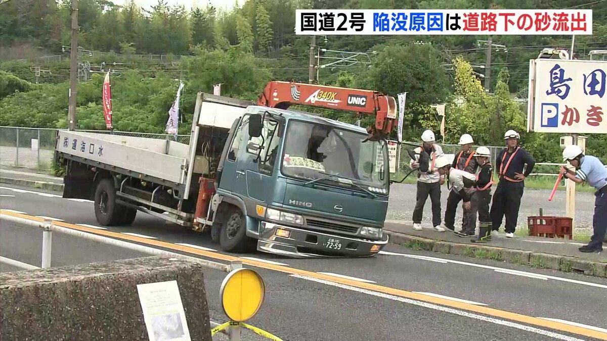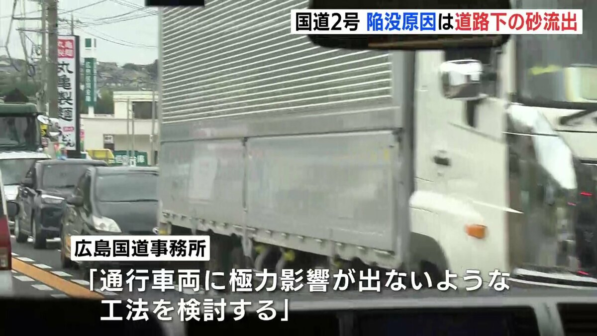 広島県廿日市市の国道2号で9月に起きた陥没は、大雨の影響で道路の下の砂が流れ出したことが原因だとわかりました。