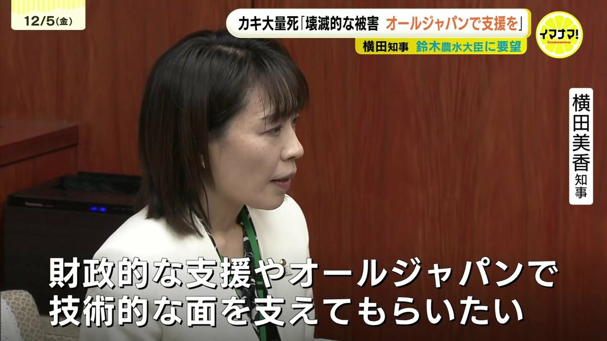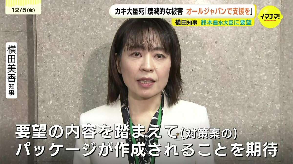 瀬戸内海沿岸で養殖カキが大量死している問題です。広島県の横田美香知事は5日、農林水産省を訪れ、財政支援や原因の究明などを要望しました。