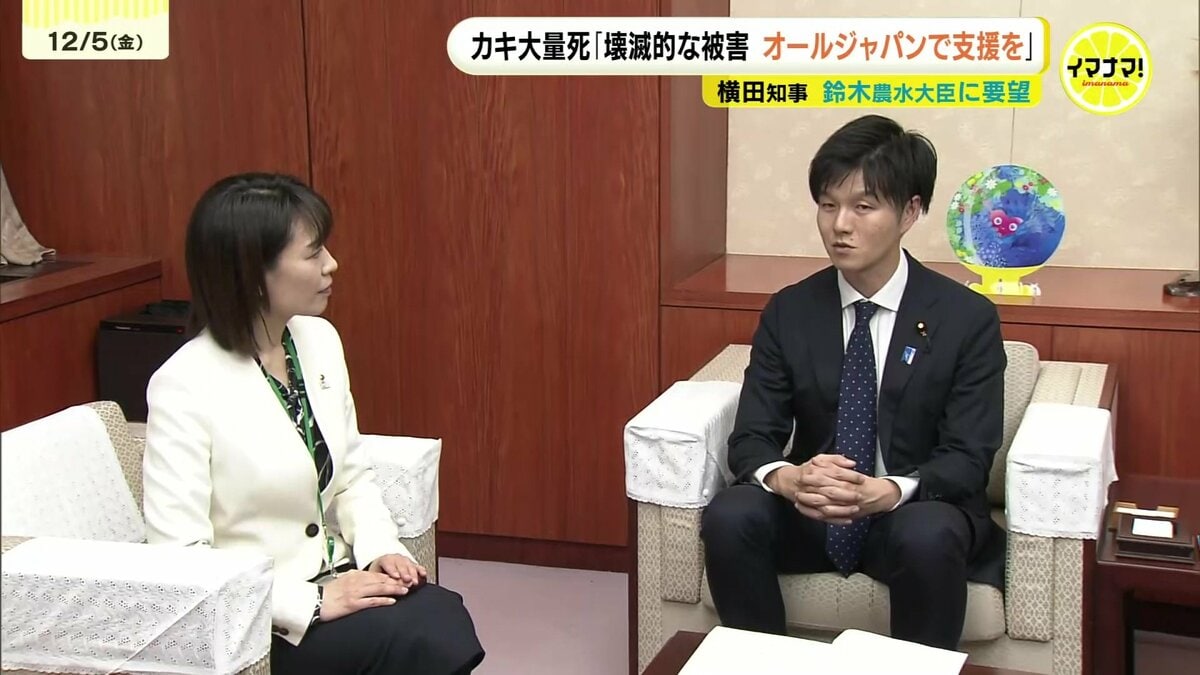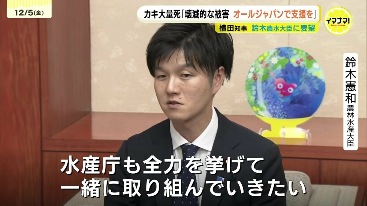 広島県内の海域では9月以降、養殖カキが大量に死ぬ被害が起きています。横田知事は鈴木憲和農水大臣を訪ね、県内のカキ養殖業者は「壊滅的な被害を受けている」として、緊急の財政支援などを強く要望しました。