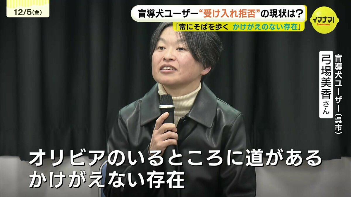 広島県呉市の盲導犬ユーザーの弓場美香さん。パートナーは、ラブラドール・レトリバーのオリビア(6)です。日常のなか、同伴を拒否されるケースが少なくないと話します。