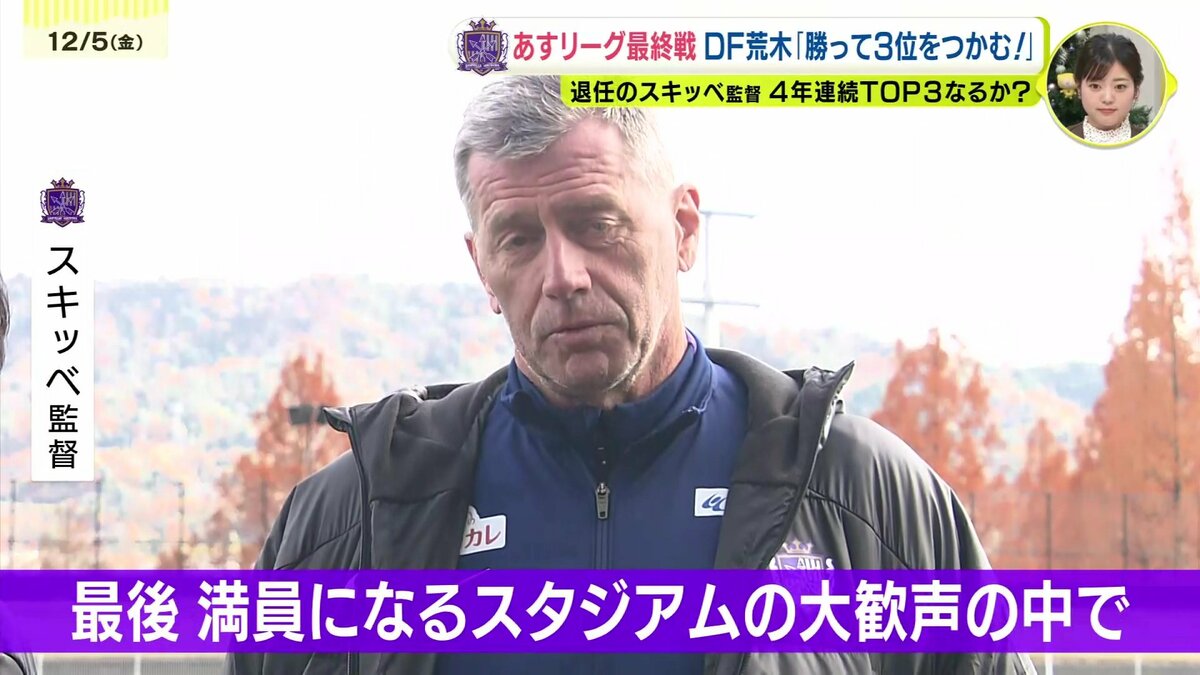 現在J1で4位のサンフレッチェは退任を発表したスキッベ監督にとって、6日の試合が最後のリーグ戦です。4年連続3位以内をかけた試合になります。