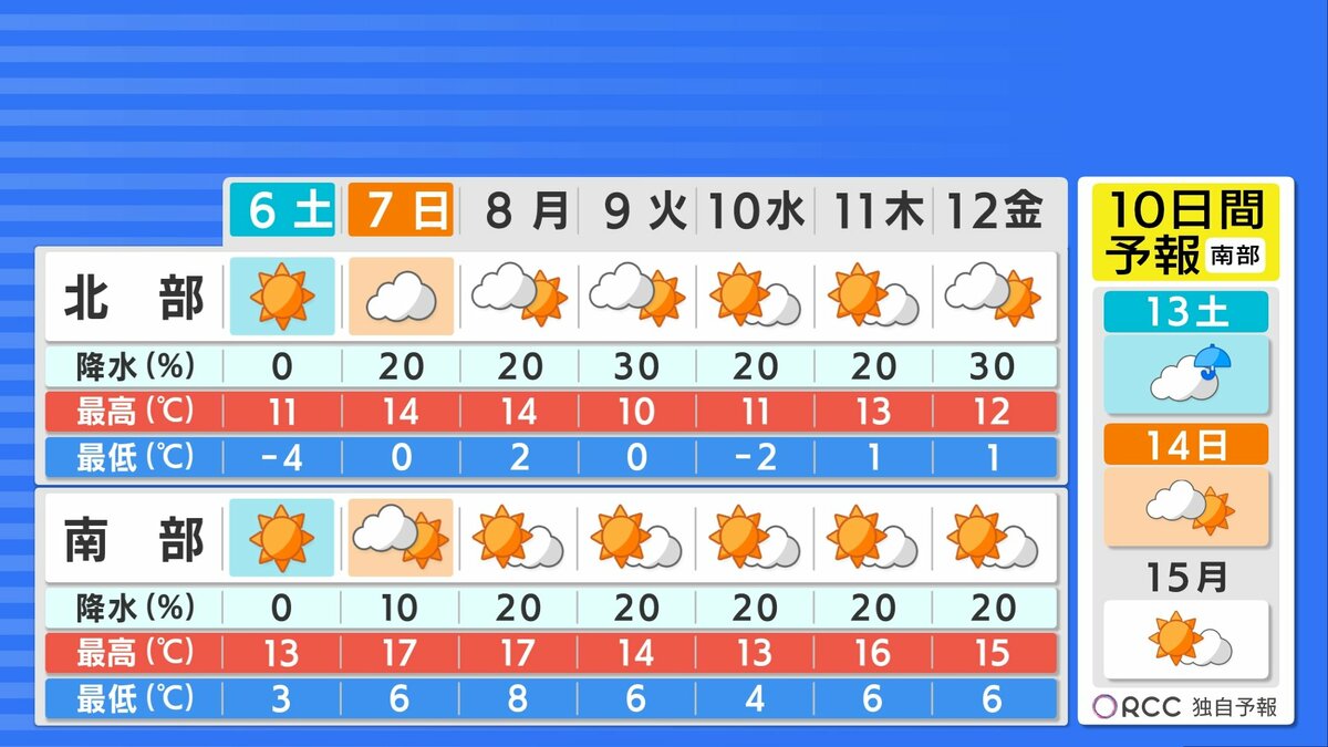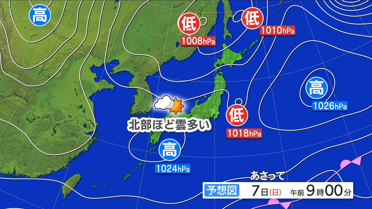 7日(日)日差しが届けば暖かい 北部ほど雲多め