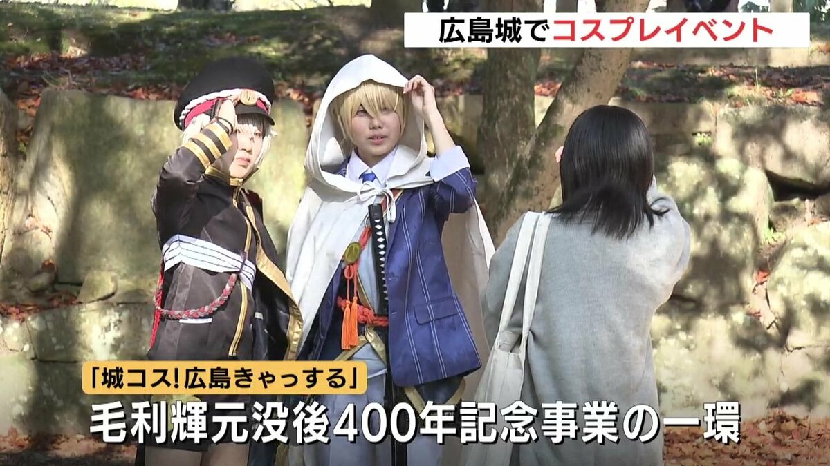 広島城一帯で開かれたのは「城コス!広島きゃっする」というコスプレのイベントです。広島城の天守を築いた、毛利輝元の没後400年を記念する事業の一環として開催されました。約300人の参加者は、思い思いのコスチュームに身を包み、普段とは違うロケーションでの撮影を楽しんでいました。