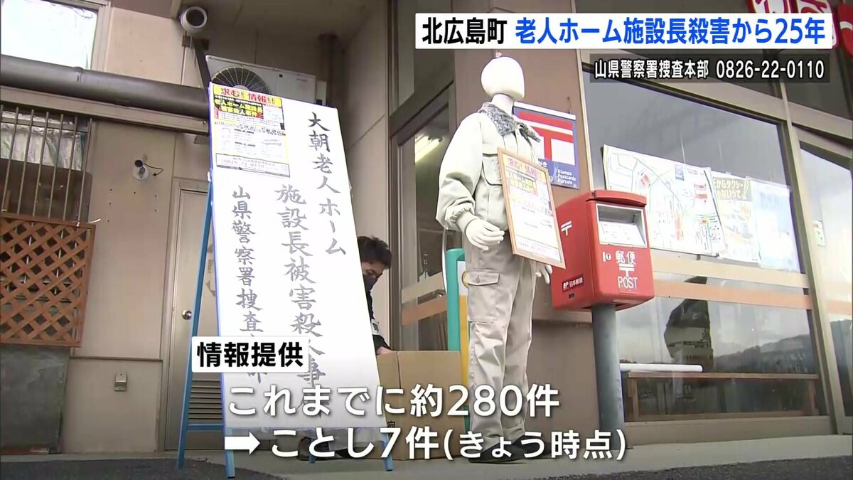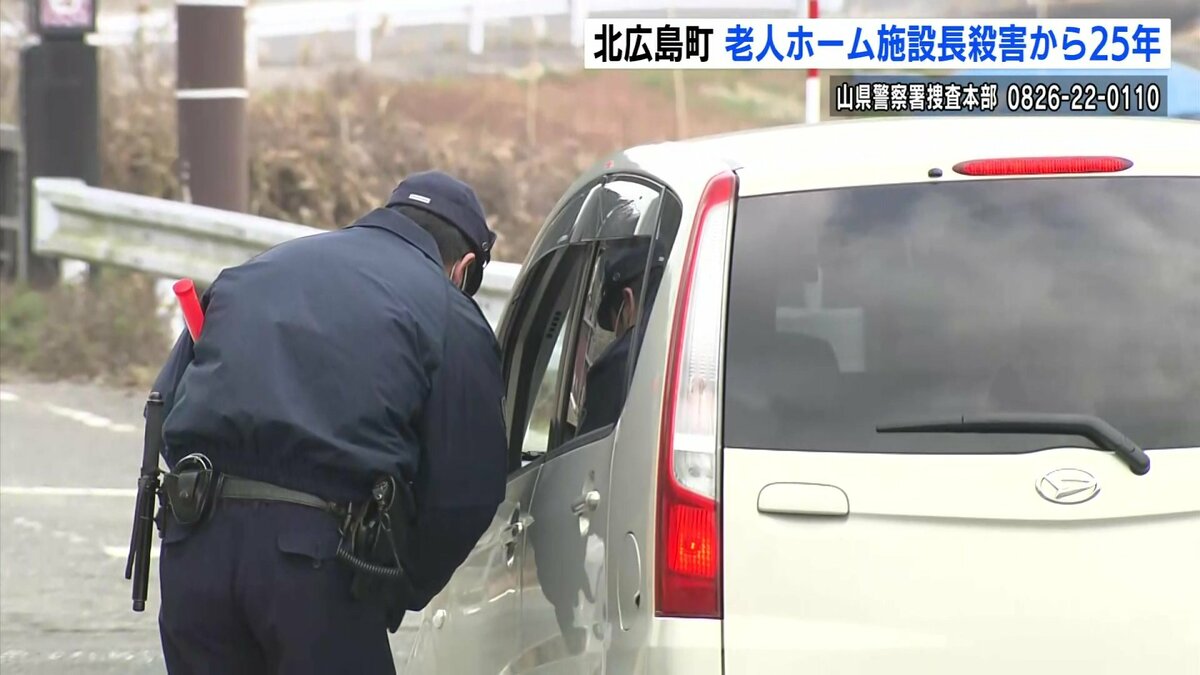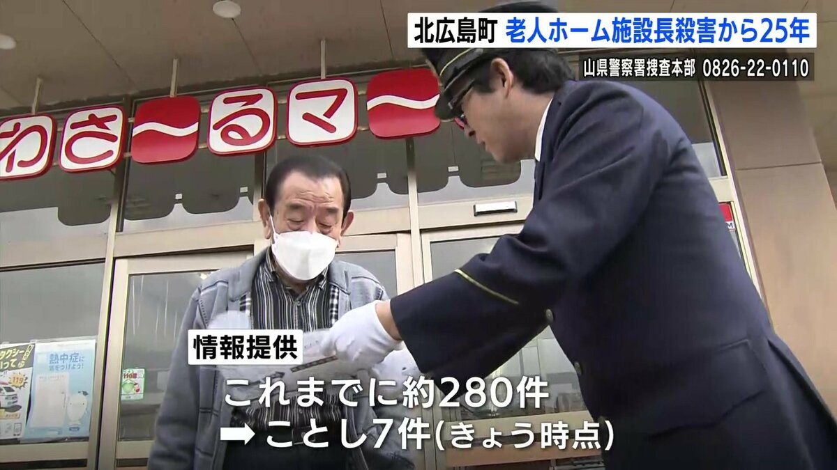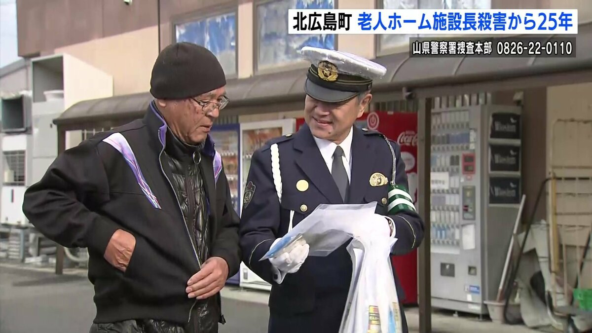 広島県北広島町で老人ホームの施設長が殺害された事件は、未解決のまま、発生から25年となりました。県警は不審な男の25年後を推定し、新たな似顔絵を公開すると共に、8日に現場付近で情報提供を呼びかけました。