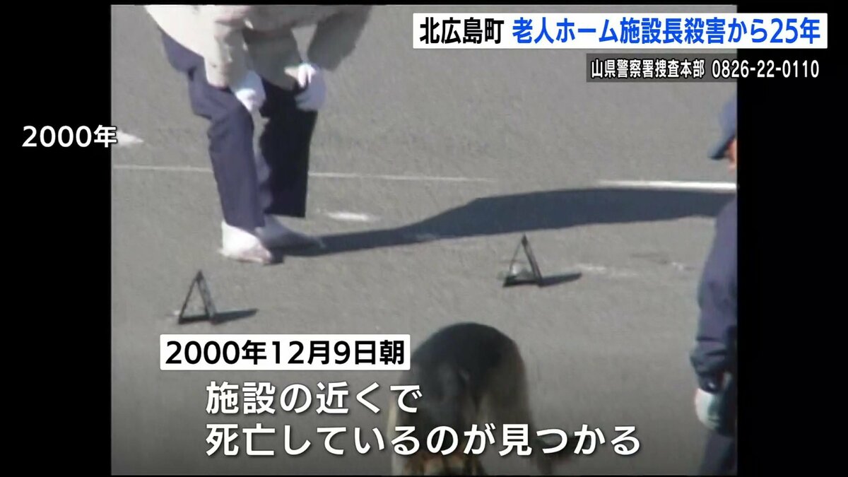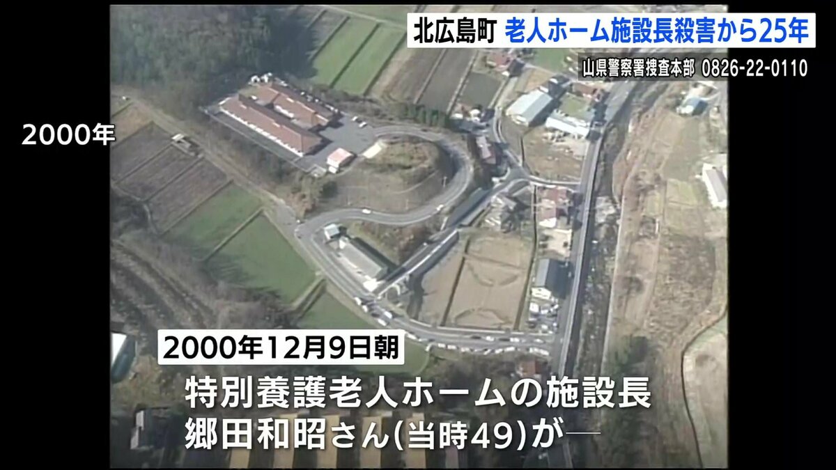 この事件は、2000年12月9日の朝、北広島町大朝で当時、特別養護老人ホームの施設長だった郷田和昭さん(当時49)が、施設の近くで死亡しているのが見つかったものです。