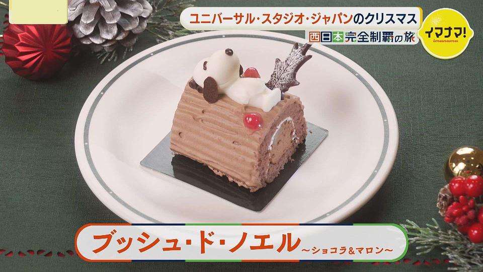 デザートには、クリスマスの定番ケーキ「ブッシュ・ド・ノエル」を🎶 切り株の上でスヌーピーがお昼寝中💤