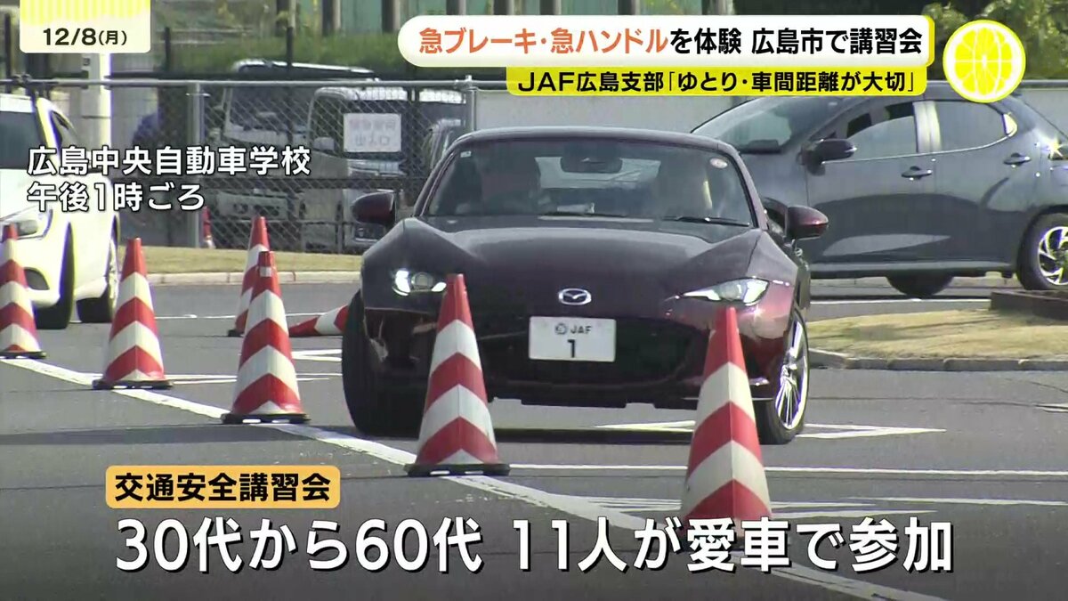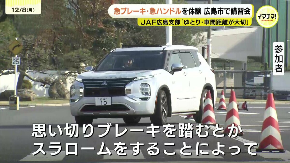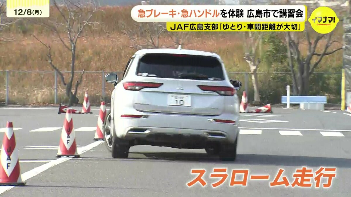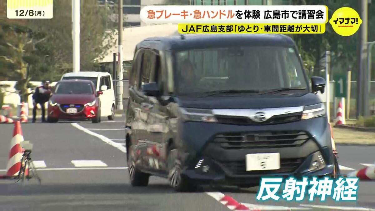 普段体験しない急ブレーキや急ハンドルなどの運転で、自分の技量や車の挙動を確認する講習会が広島市で開かれました。