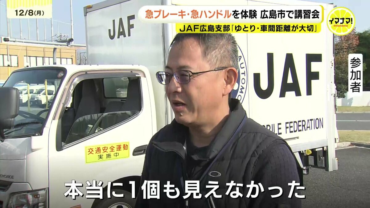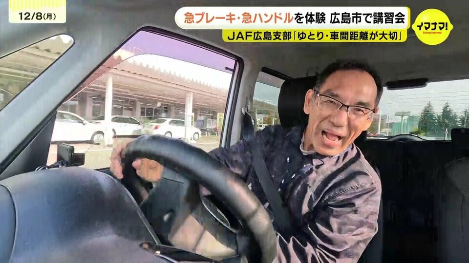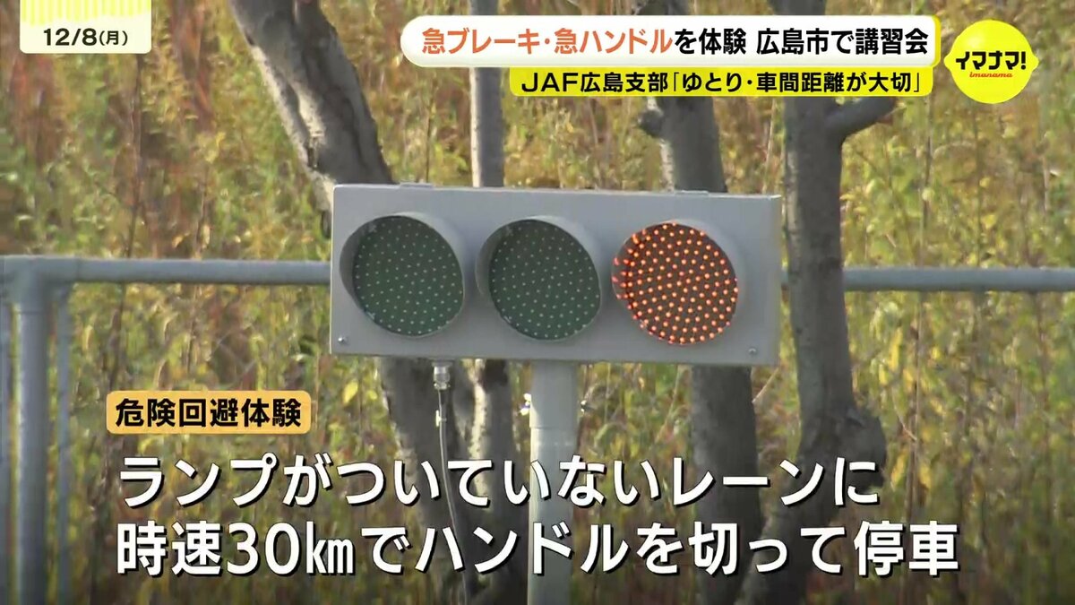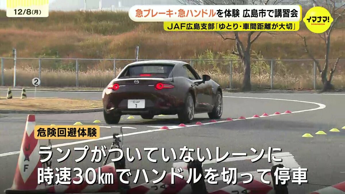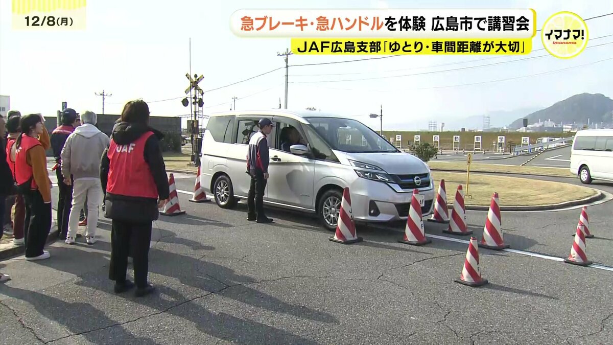 普段体験しない急ブレーキや急ハンドルなどの運転で、自分の技量や車の挙動を確認する講習会が広島市で開かれました。