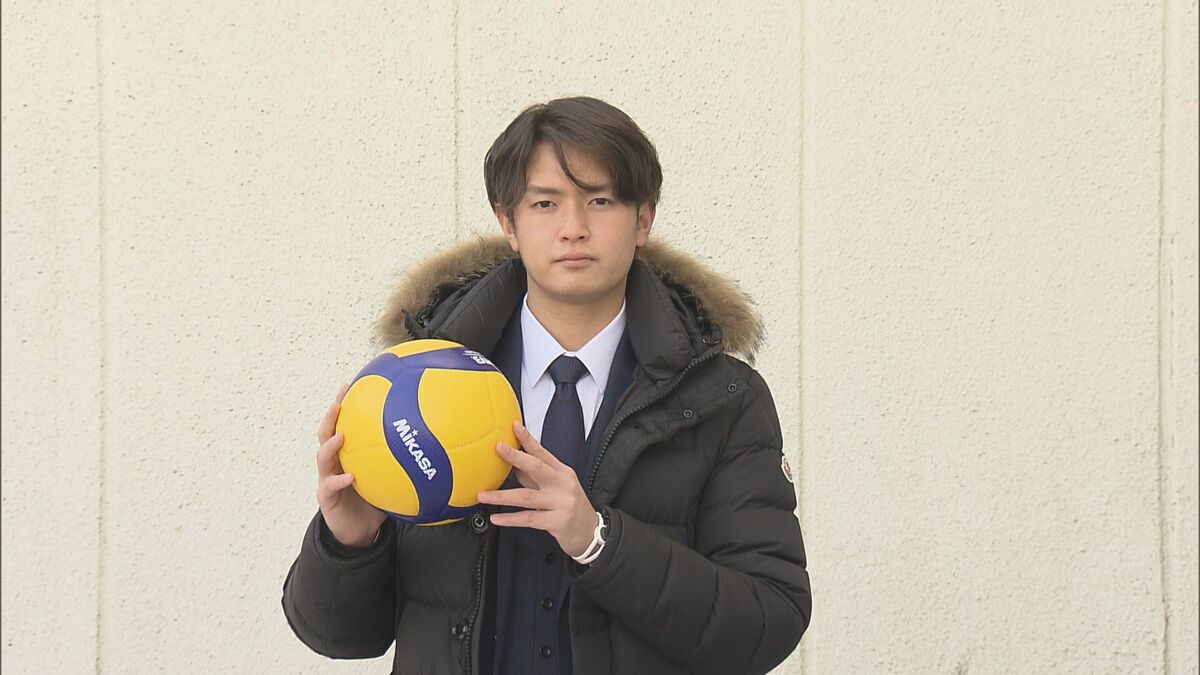 2021年1月 入寮時に練習アイテムのバレーボールを持参する大道温貴
