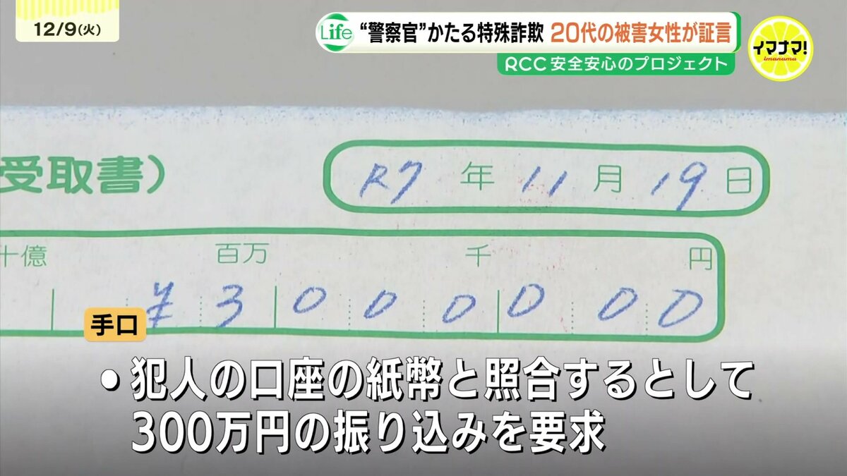 安全・安心に関わる情報をお伝えするプロジェクト「ライフ」。広島県内で相次ぐ「警察官」をかたる特殊詐欺についてです。福山市内の20代の女性が被害に遭った手口とは?