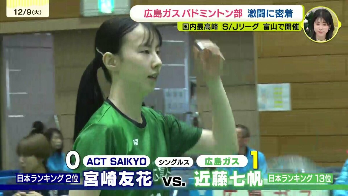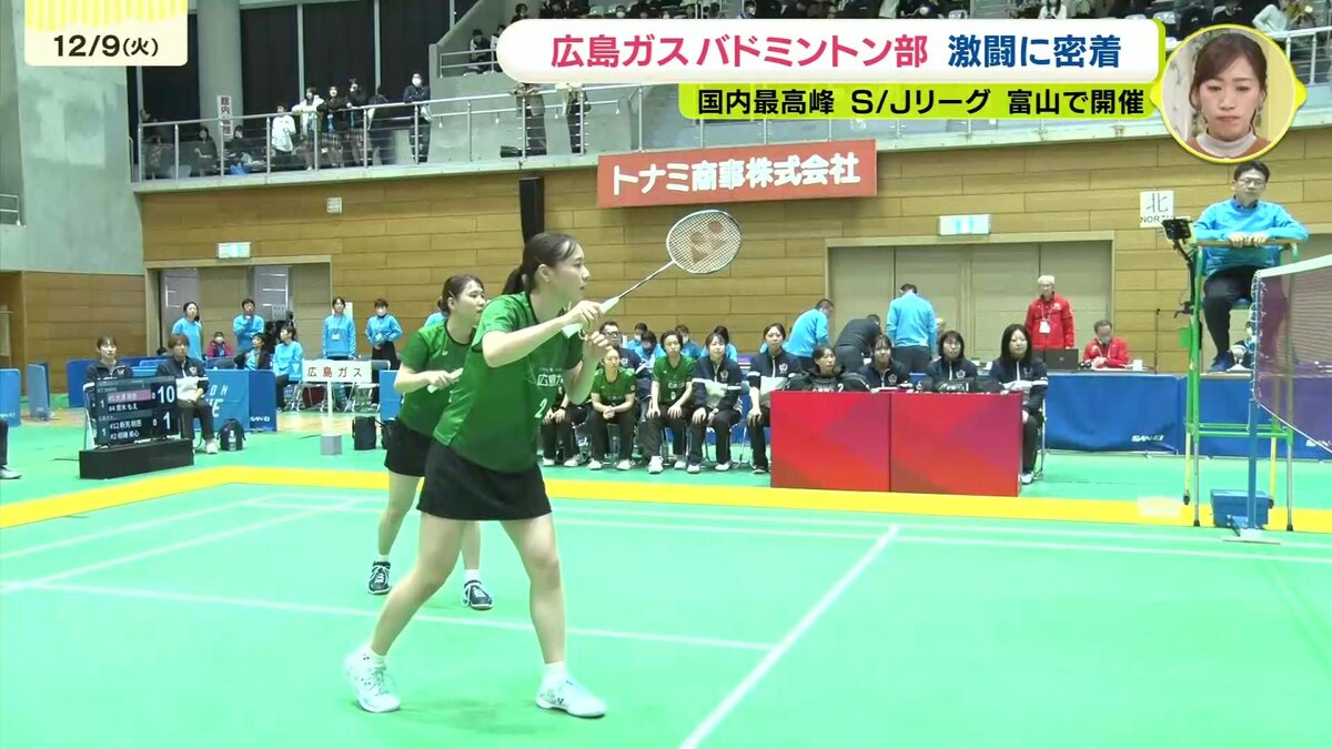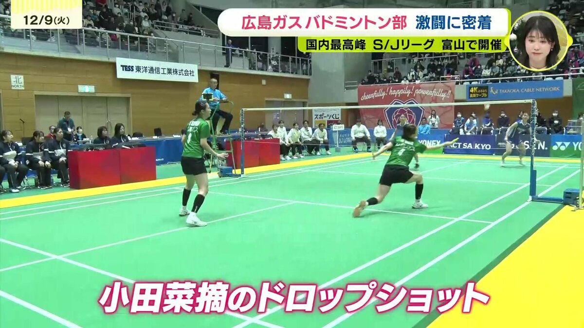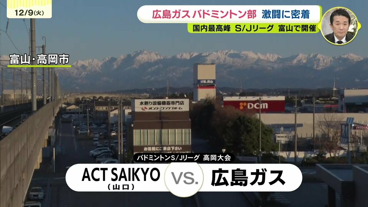 立山連峰を望む富山県高岡市で行われたバドミントンS/Jリーグ高岡大会。広島ガスは山口に拠点をおくACTSAIKYOと対戦しました。第1ダブルス、シングルス、第2ダブルスの3試合で争います。