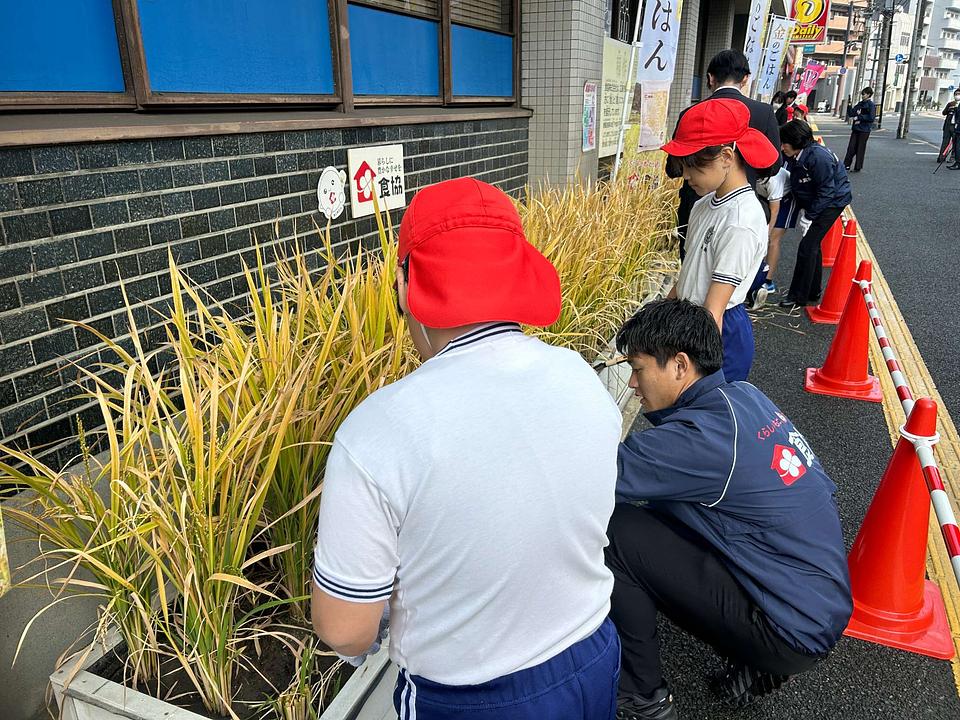 先月11月25日(火)、広島市南区松川町にある食協株式会社の本社前で、 稲刈り体験が行われました。