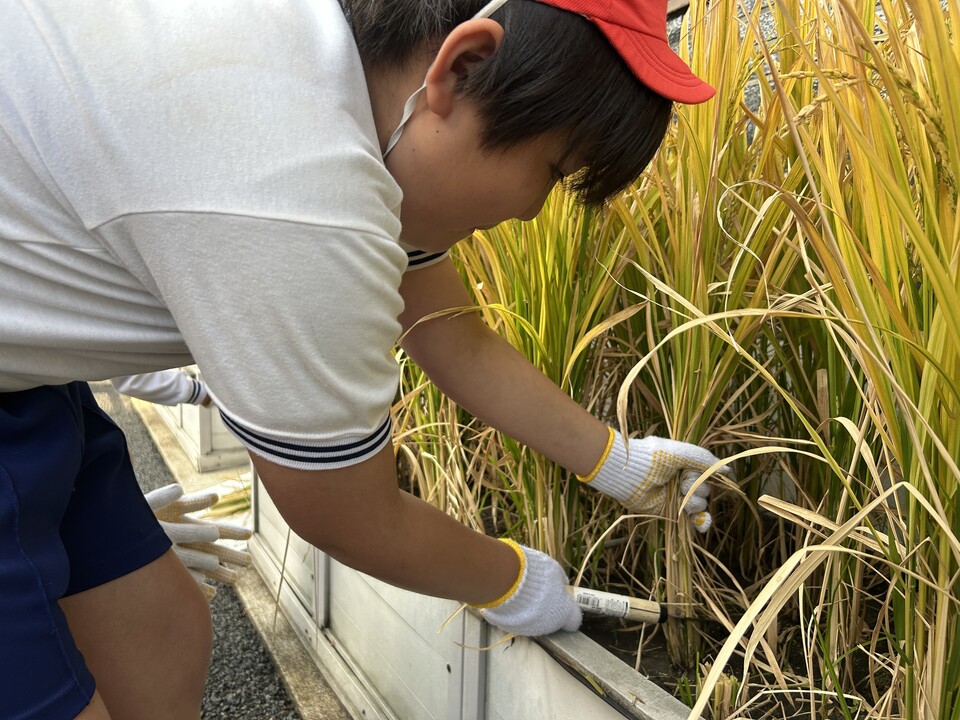 段原小学校の皆さんが、今年6月上旬に田植えを行った多収穫米「しきゆたか」の稲刈りをしました。
