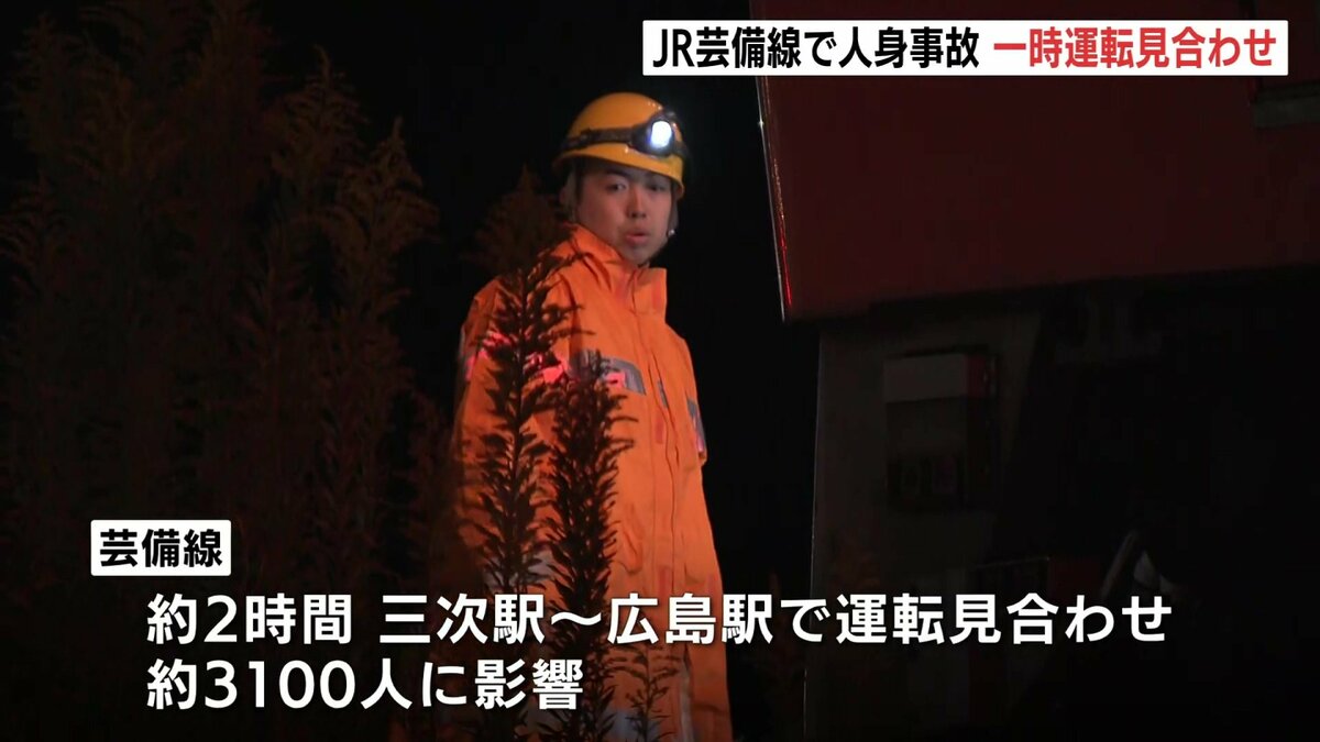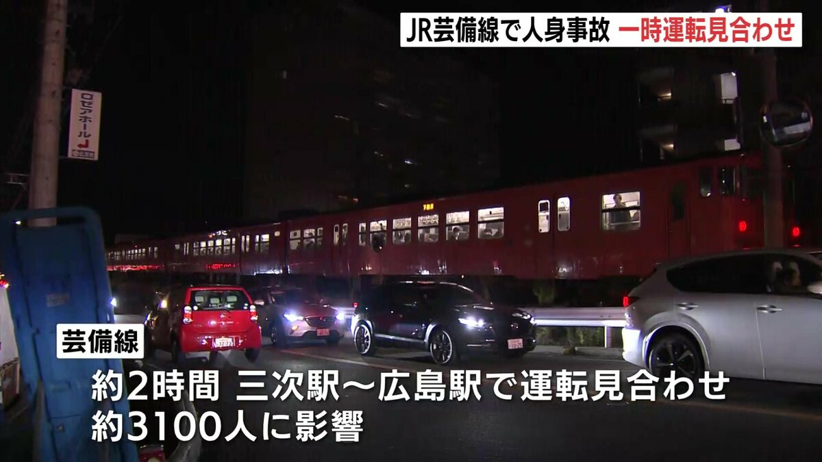 列車には当時、約160人が乗っていましたが、けがはありませんでした。この事故で芸備線はおよそ2時間にわたって三次駅と広島駅の間で運転を見合わせ、約3100人に影響したということです。
