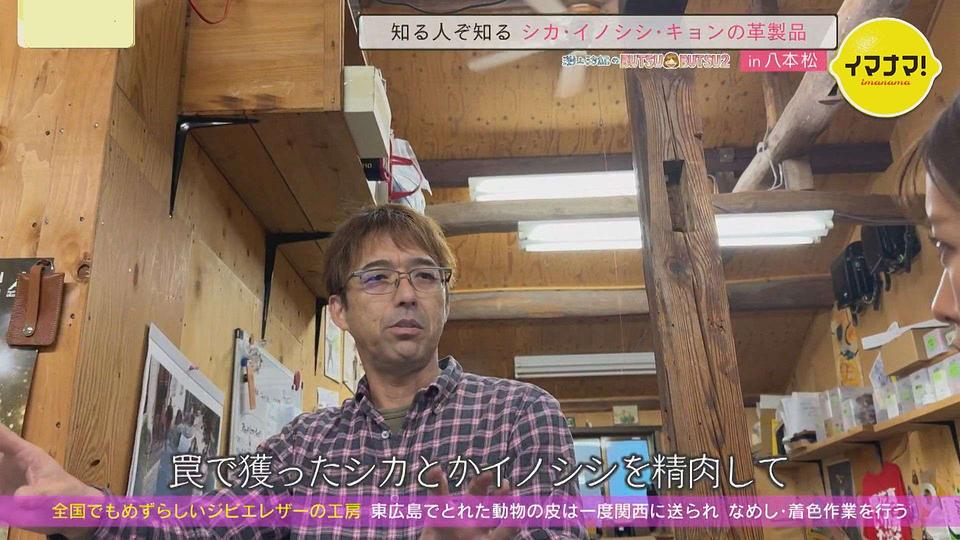 農業被害等を削減するために東広島市で狩猟された鹿やイノシシを狩猟し、ジビエ肉として精肉。その過程で出る皮を革製品に加工・販売されている 全国でも珍しい工房なんです。
