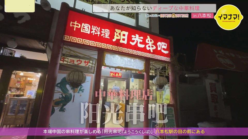 唐澤恋花ラストロケ、最後は八本松駅近くの中華料理店 「阳光串吧(ヨウコウクシバ)」 へ。いわゆる町中華ではなく、本場中国の食堂などで提供されている串料理がメインのお店。