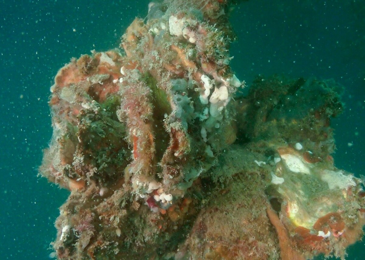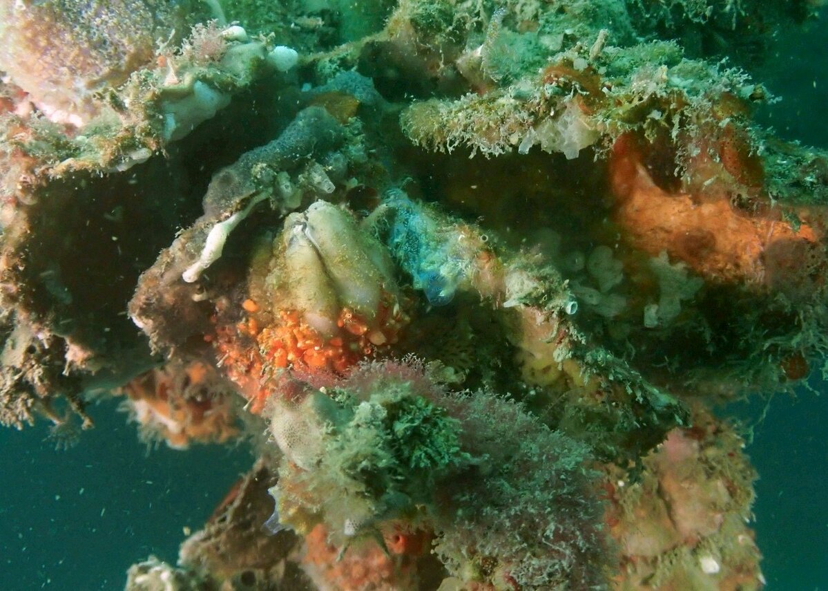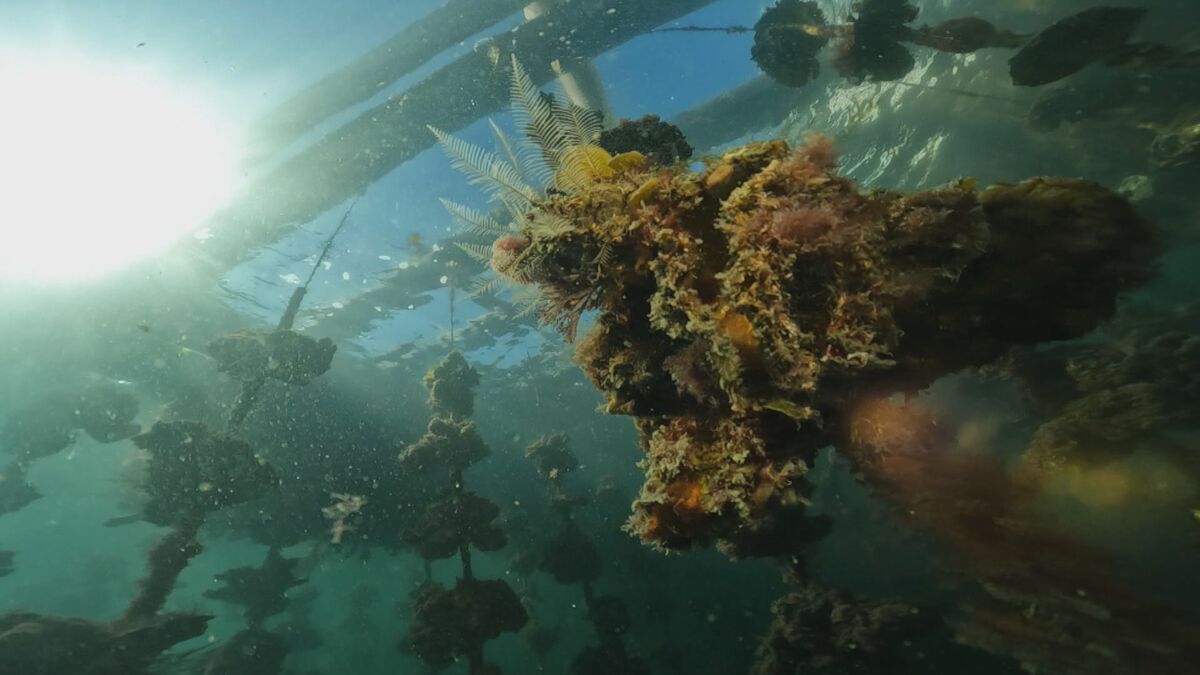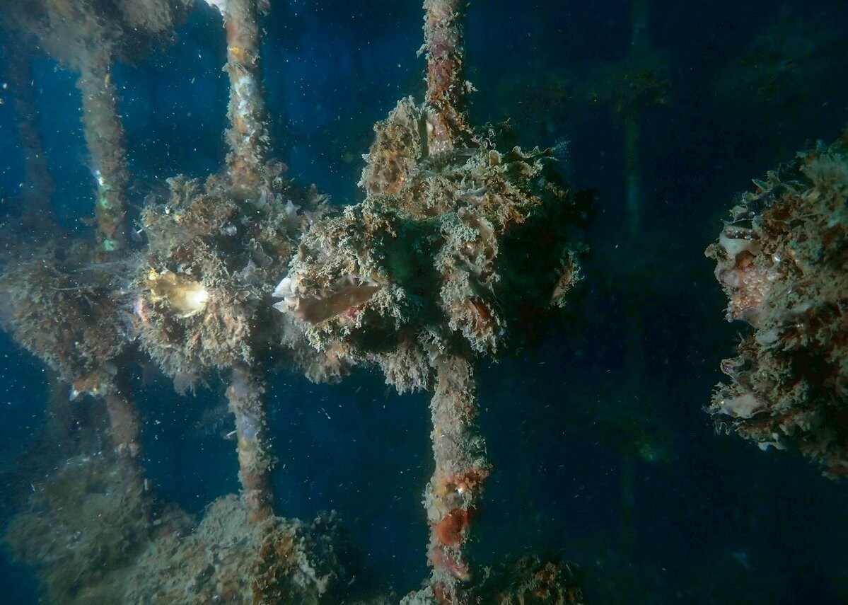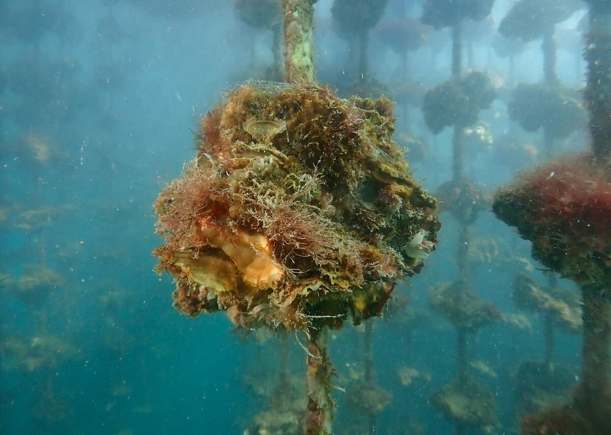カキ筏で養殖されているカキの海の中の様子です。死んでしまい、口を開けて、中身は空っぽの状態です。今シーズン水揚げされるカキだけでなく、来シーズンのものでもこうした状態が見られます。カキ大量死の被害が集中する呉市で養殖業者のカキ筏を潜水取材しました。