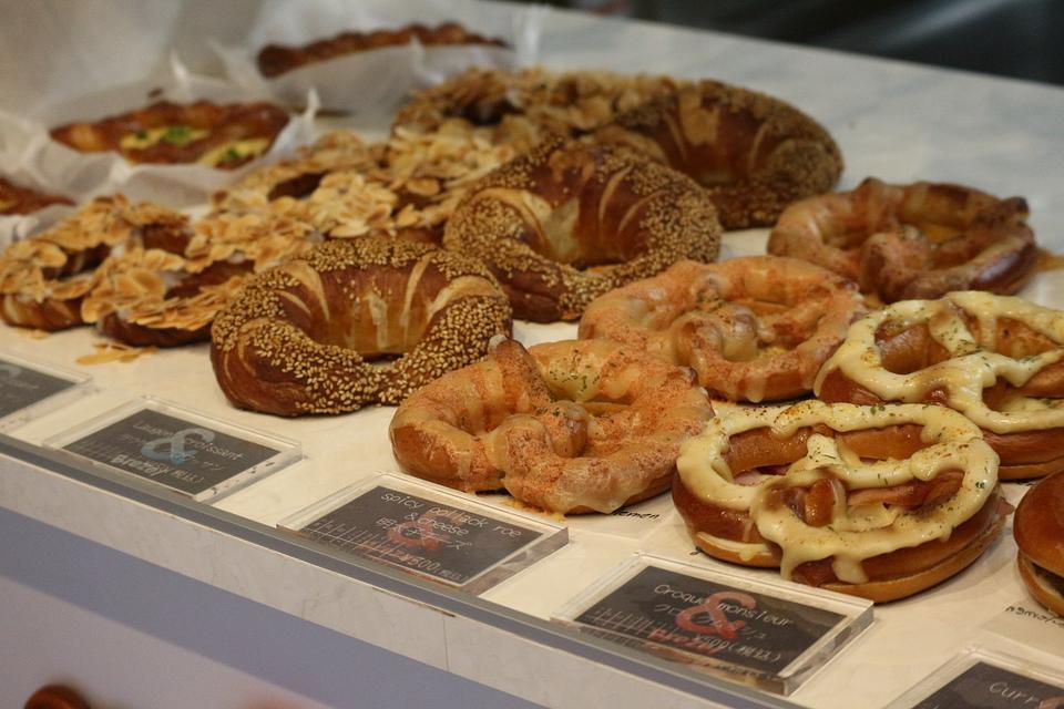 つやっと焼きあがったブレッツェルが、ずらりと並んでいました。