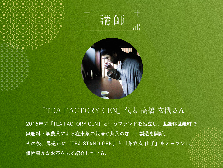 広島で肥料を使わず茶葉栽培を行う茶農家・高橋玄機さん(「TEA FACTORY GEN」代表)をお招きして特別なワークショップを開催♪