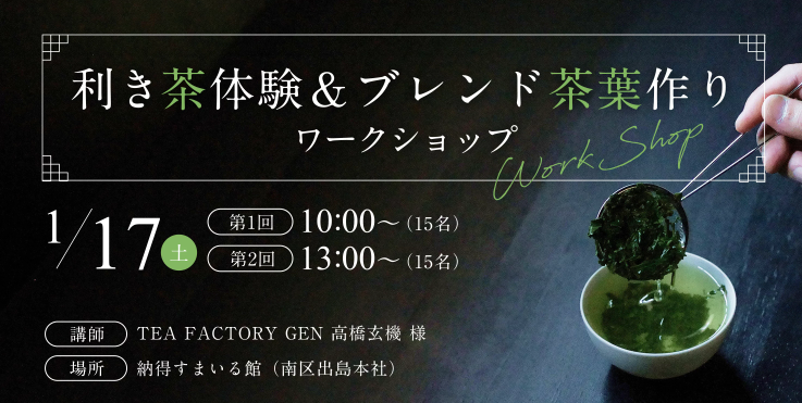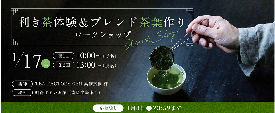 奥深い「緑茶」の利き茶体験と、自分好みにアレンジしたブレンド茶葉のワークショップを行います。