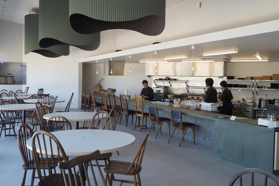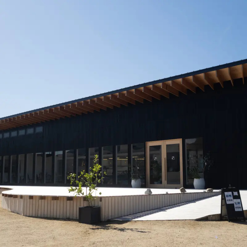 オリーブや醤油、そうめんなど、食が豊かな小豆島に、2025年4月、新たなグルメスポット「Cultiva(カルチバ)」が誕生しました!場所は小豆島の南側、内海湾を望む草壁港近く。なだらかな斜面の屋根と焼杉が印象的な建物は建築家・隈太一さんが手がけました。