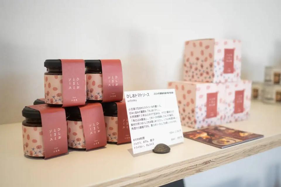 カルチバ店内のショップでは、料理で使われている「ひしおトマトソース」や、小豆島の調味料・特産品、香川県の伝統工芸品などが販売されています。