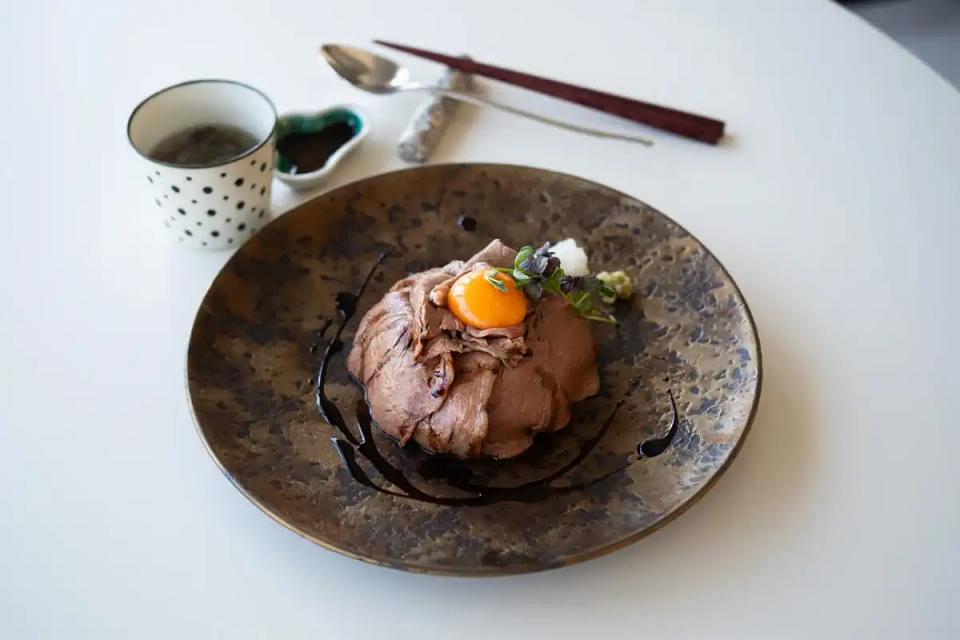 「オリーブ和牛丼」も人気。小豆島で育てたオリーブ牛に、鶴醤を使った甘じょっぱい焦がし醤油ダレに箸が止まりません。