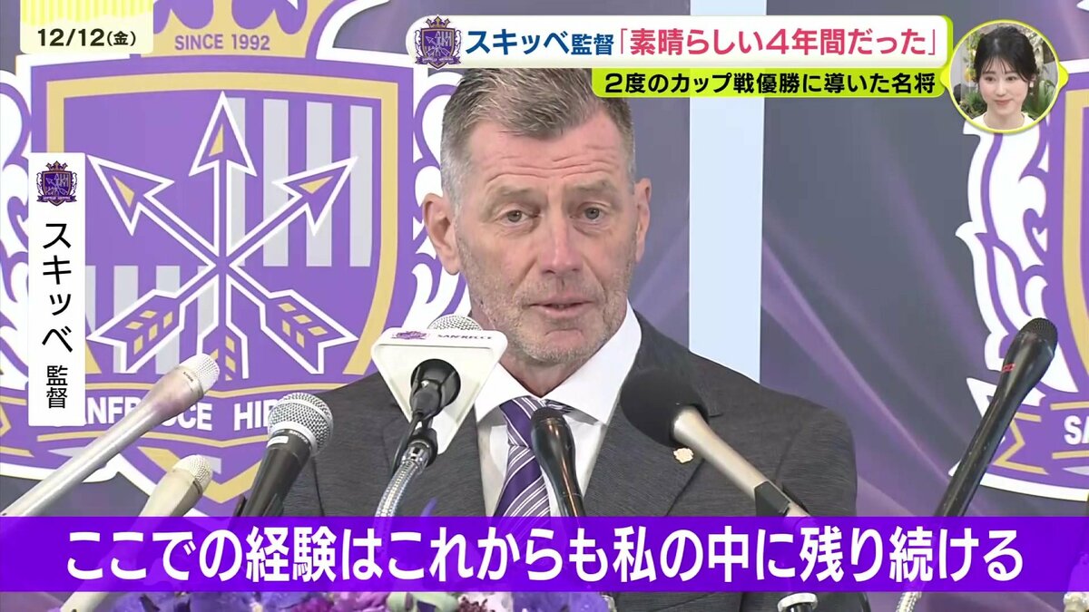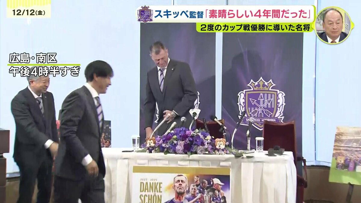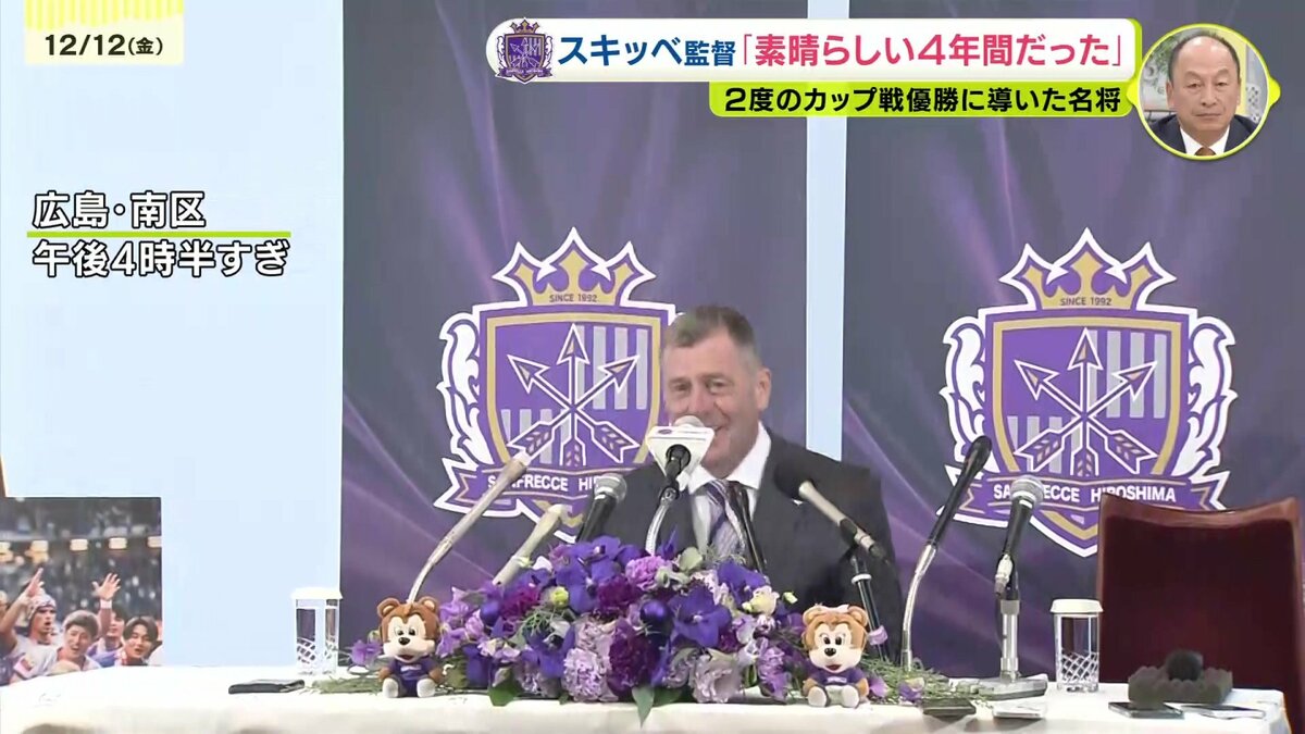 サンフレッチェを率いてカップ戦で2度の優勝に導いたスキッベ監督が退任会見を開き広島での時間は「素晴らしい4年間だった」と振り返りました。