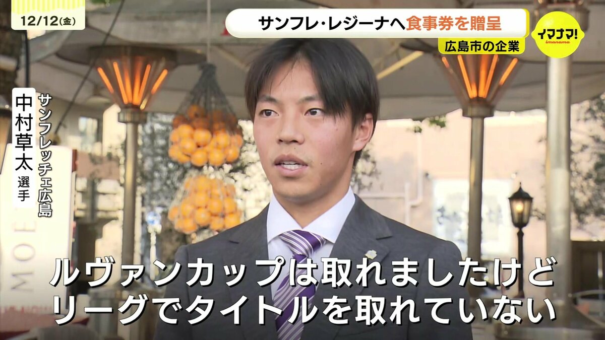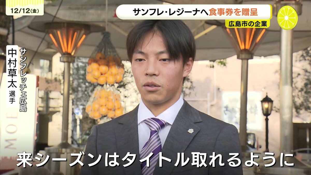 食事券をプレゼントしたのは、マンション管理などを手がける合人社グループで、今回で6回目です。食事券は元安川沿いのレストラン、「カフェ・ポンテ」で利用できます。リーグ4位だったサンフレッチェ広島は来シーズン、新体制のもと優勝を、レジーナは、年をまたいでのタイトル獲得を目指しています。