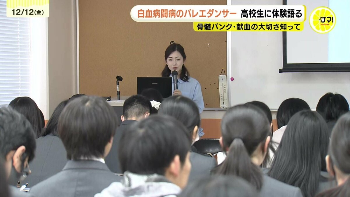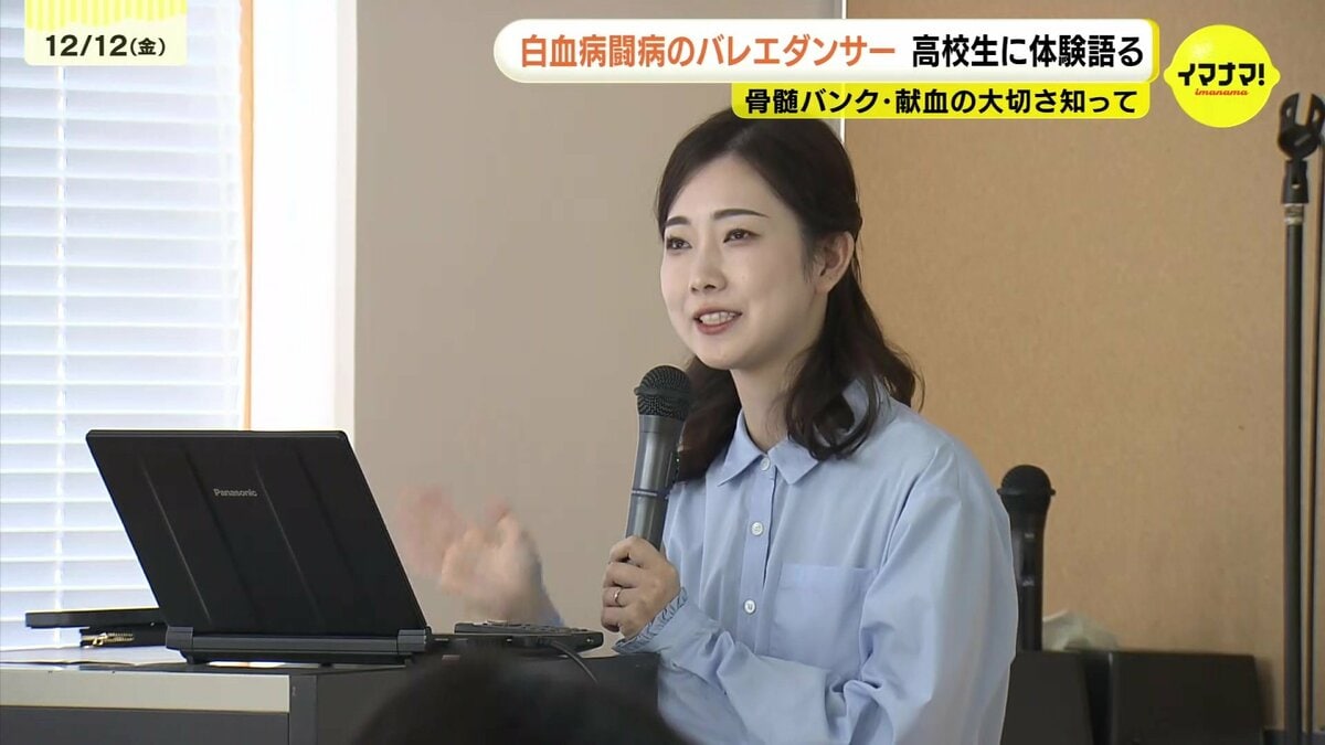 骨髄バンクや献血の大切さについて知ってもらおうと、白血病の闘病経験のあるバレエ・ダンサーが、高校生を前に自身の体験を語りました。