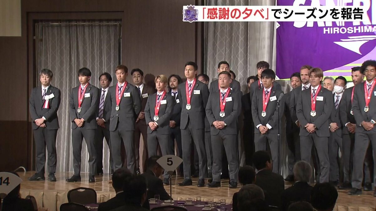 年内最後の試合を終えたサンフレッチェ広島は12日、関係者を招いた「感謝の夕べ」を開き、今シーズンの報告をしました。
