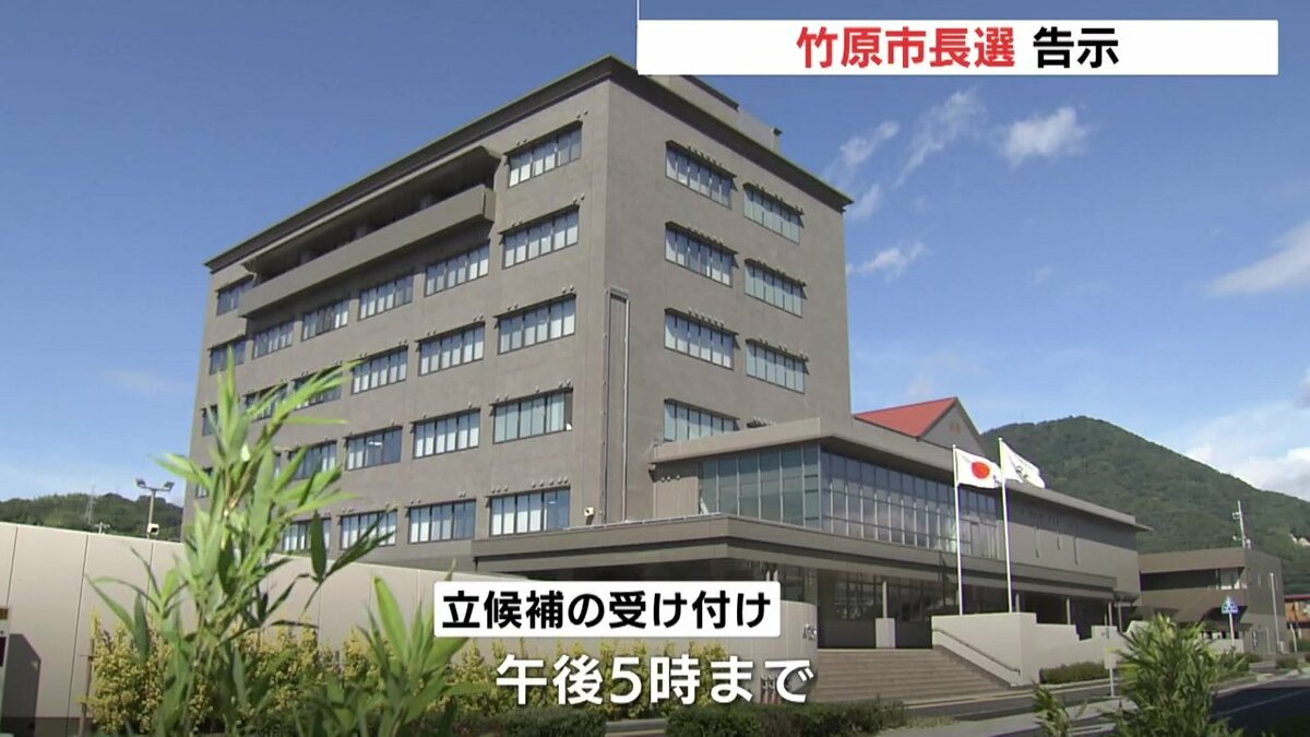 任期満了に伴う広島県の竹原市長選挙が告示され、14日午前中までに現職と新人の2人が立候補を届け出ました。