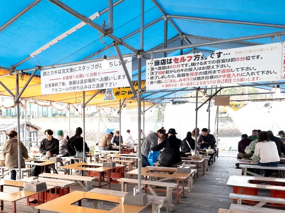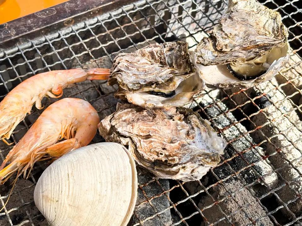 「かき小屋」の魅力は、新鮮なまま殻ごと豪快に網焼きできること。目の前には世界遺産・宮島の絶景が広がり、景色と味覚の両方を同時に堪能できる特別なロケーションです。特に広島の牡蠣は瀬戸内海の栄養豊富な海で育つため、身がふっくらと締まり、濃厚でクリーミーな旨みが特徴です。ということで、いざ実食!