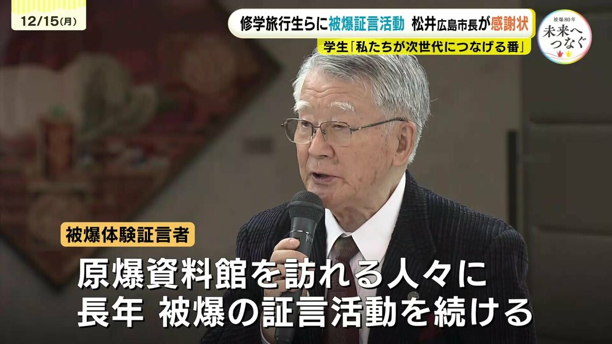 広島市の松井市長が、被爆体験を証言してきた被爆者たちの功績を称え、感謝状をわたしました。