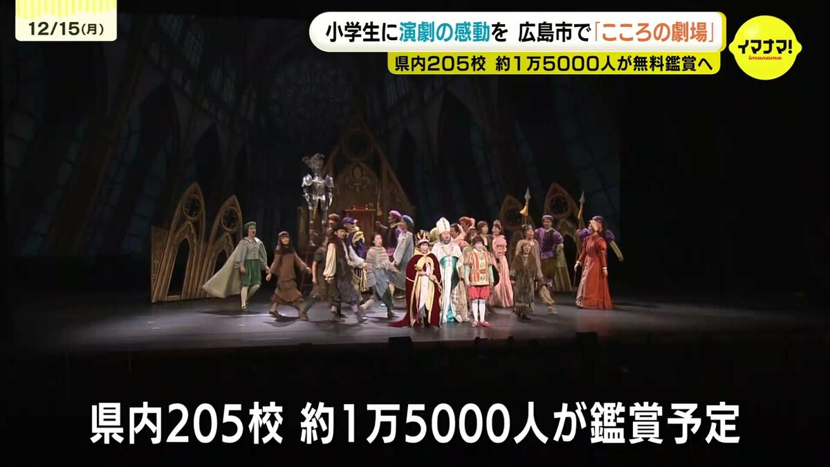 劇団四季などが小学生に演劇の感動を届ける「こころの劇場」が15日、広島市で行われました。