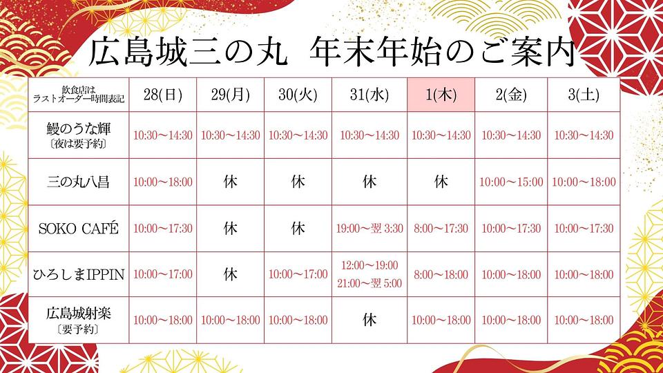 内容:年末年始&閉城までの広島城(三の丸)周辺イベント情報