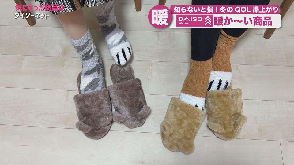 足元もルームソックス(税込110円)&吊り込みスリッパ(税込330円)で、かわいくあったかに🎶